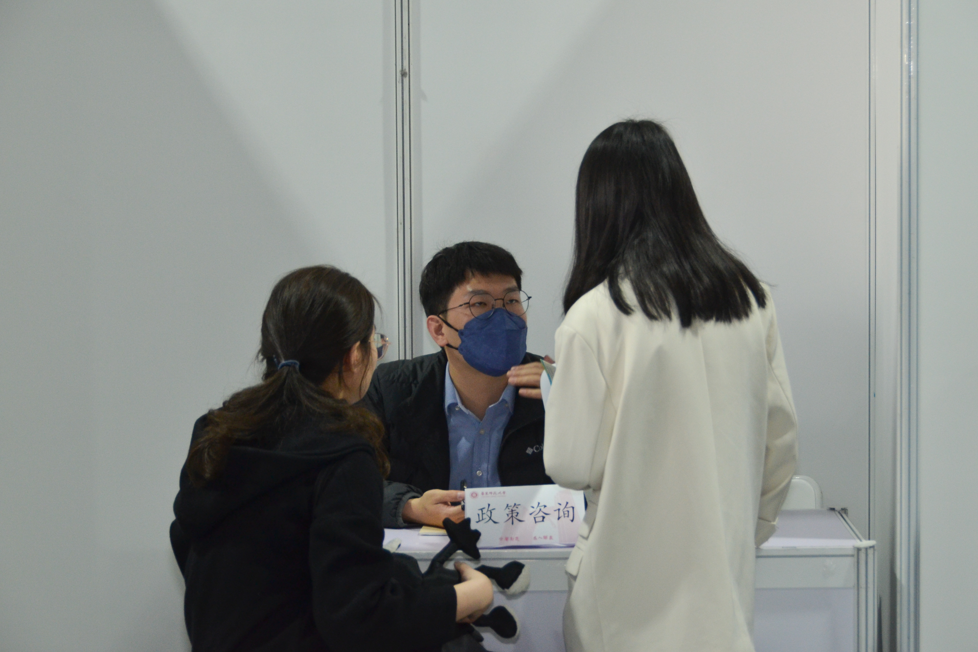招聘单位工作人员表示:“这是疫情后第一次参加华东师大校园线下双选会,感受到了学生们的求职热情”。同时,工作人员也提醒学生,“单位在招聘面试时会特别关注:求职者待人接物的方式,沟通时展现出来的知识储备、思维的完整性,以及大家思考问题的方向。”