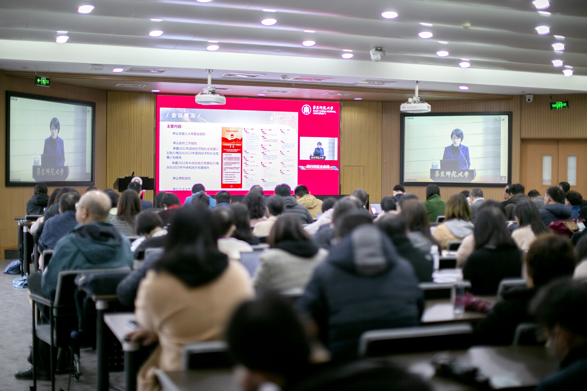 会议采取现场与视频直播相结合的方式举行,主会场设在闵行校区学生之家C区报告厅,视频分会场设在普陀校区图书馆报告厅。校领导,校党委委员、纪委委员,全校中层干部参加学习。校民主党派和统战团体委员会、理事会成员,机关各支部支委,第19期青年骨干理论培训班学员,第6期院系级党组织组织员培训班学员等列席会议。
