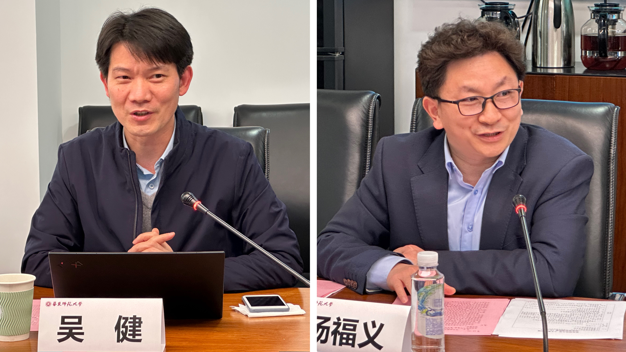 华东师大研究生院常务副院长吴健和副院长杨福义介绍了为响应上海国创院建设,华东师大集成电路、生物医药和人工智能等学位点校企合作基础和合作共建意愿的基本情况,以及学校为三个学位点提供的体制机制保障和激励措施。
