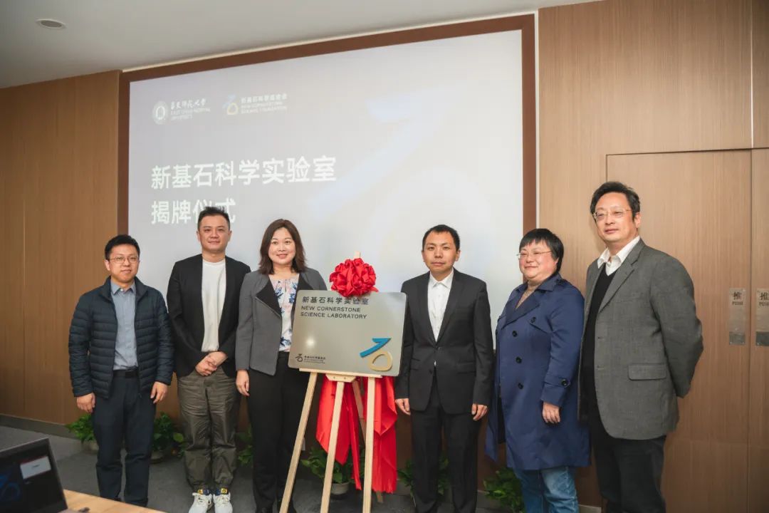 万象城awcsport官网副校长施国跃,数学科学学院教授、新基石研究员刘钢,新基石科学基金会副秘书长郑素萍等共同为新基石科学实验室揭牌。