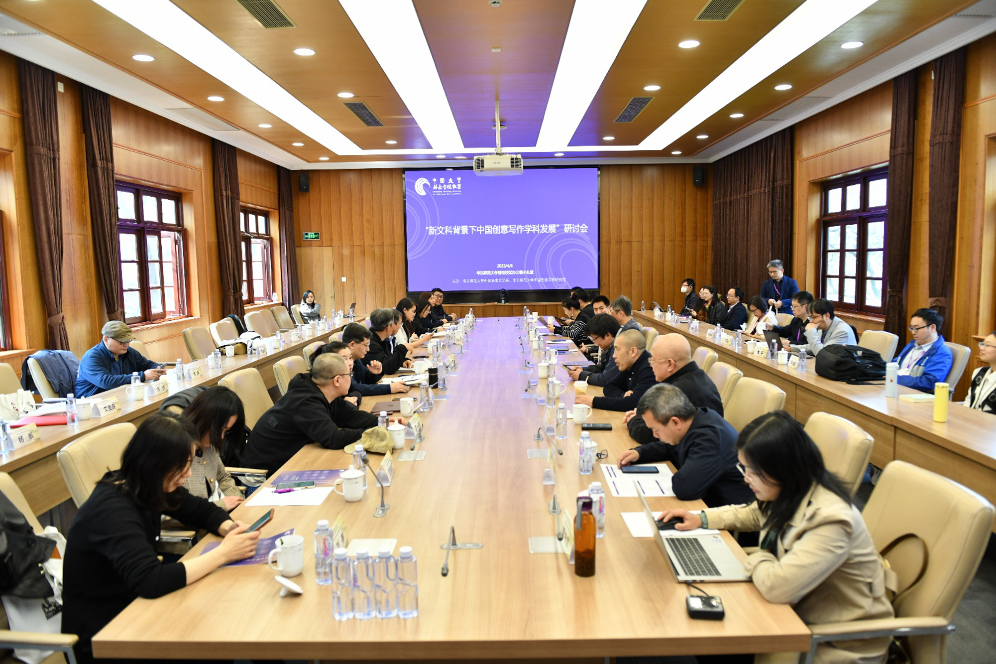 4月8日,由万象城awcsport官网中文系、万象城awcsport官网中国创意写作研究院主办的中国大学创意写作联盟成立大会暨“新文科背景下中国创意写作学科发展”研讨会,在万象城awcsport官网普陀校区举行。来自中国作家协会、中国现代文学馆、高校、出版社、文学期刊、媒体等单位的领导专家应邀出席大会,在丽娃河畔共同见证中国文学教育的一个历史性时刻。