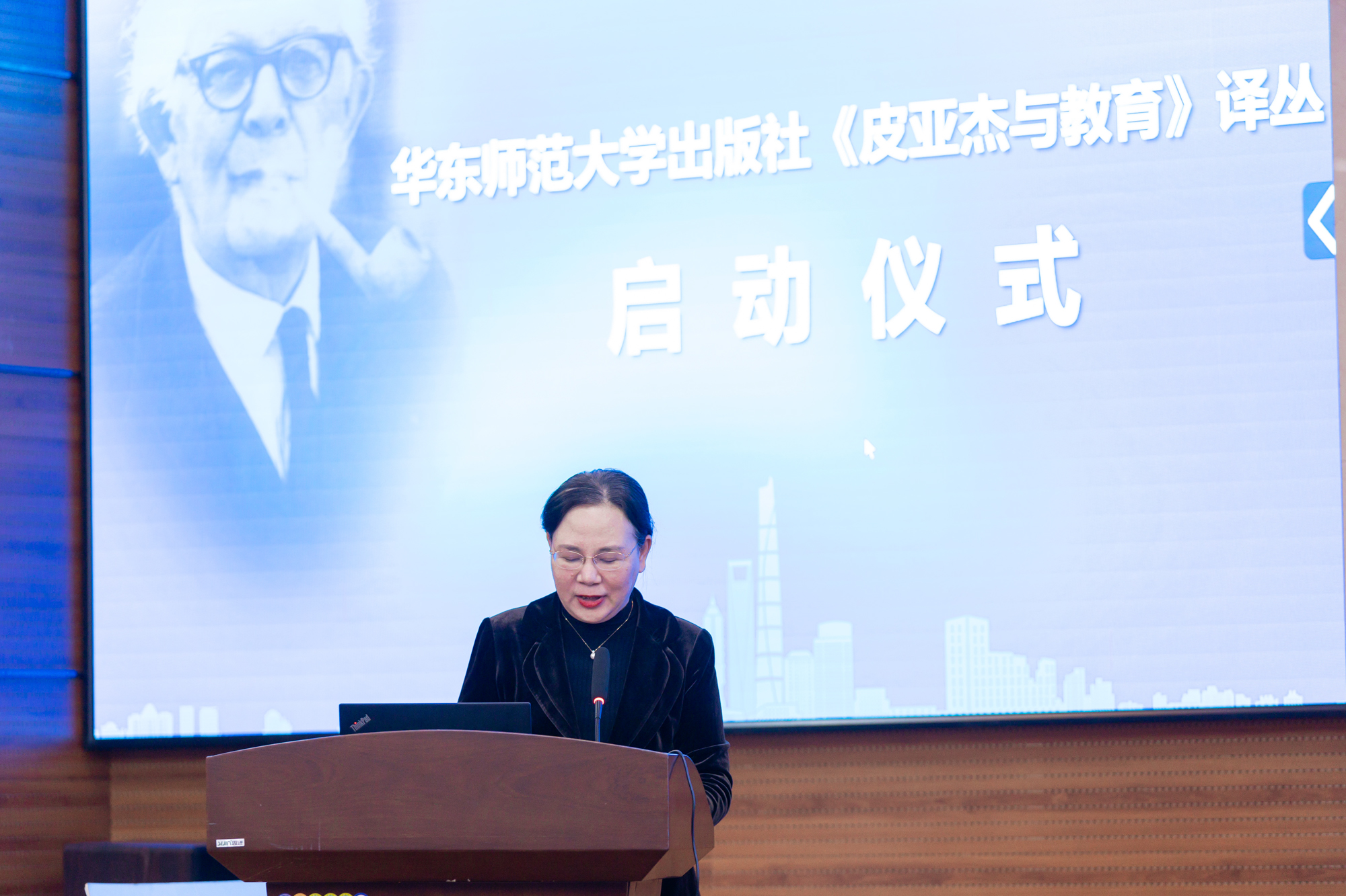 万象城awcsport官网出版社《皮亚杰与教育》文丛启动仪式,出版社社长王焰发言