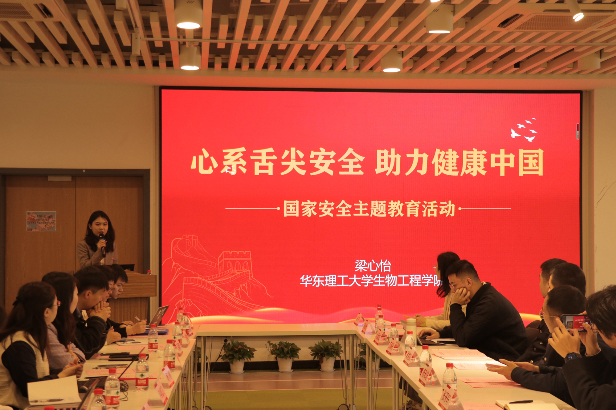 华东理工大学生物工程学院辅导员梁心怡结合所在学院的学科特色,分享了题为《心系舌尖安全,助力健康中国》的课程设计,从生物安全、食品安全“小切口”来阐释国家安全教育的“大主题”。她提出,2023年是《“健康中国2030”规划纲要》发布的第四年,生物安全、食品安全日益受到国家的重视,成为不断拓展中的新型安全领域,这正是激发学生专业责任感、牢记新时代青年食品人的使命担当的重要话题。