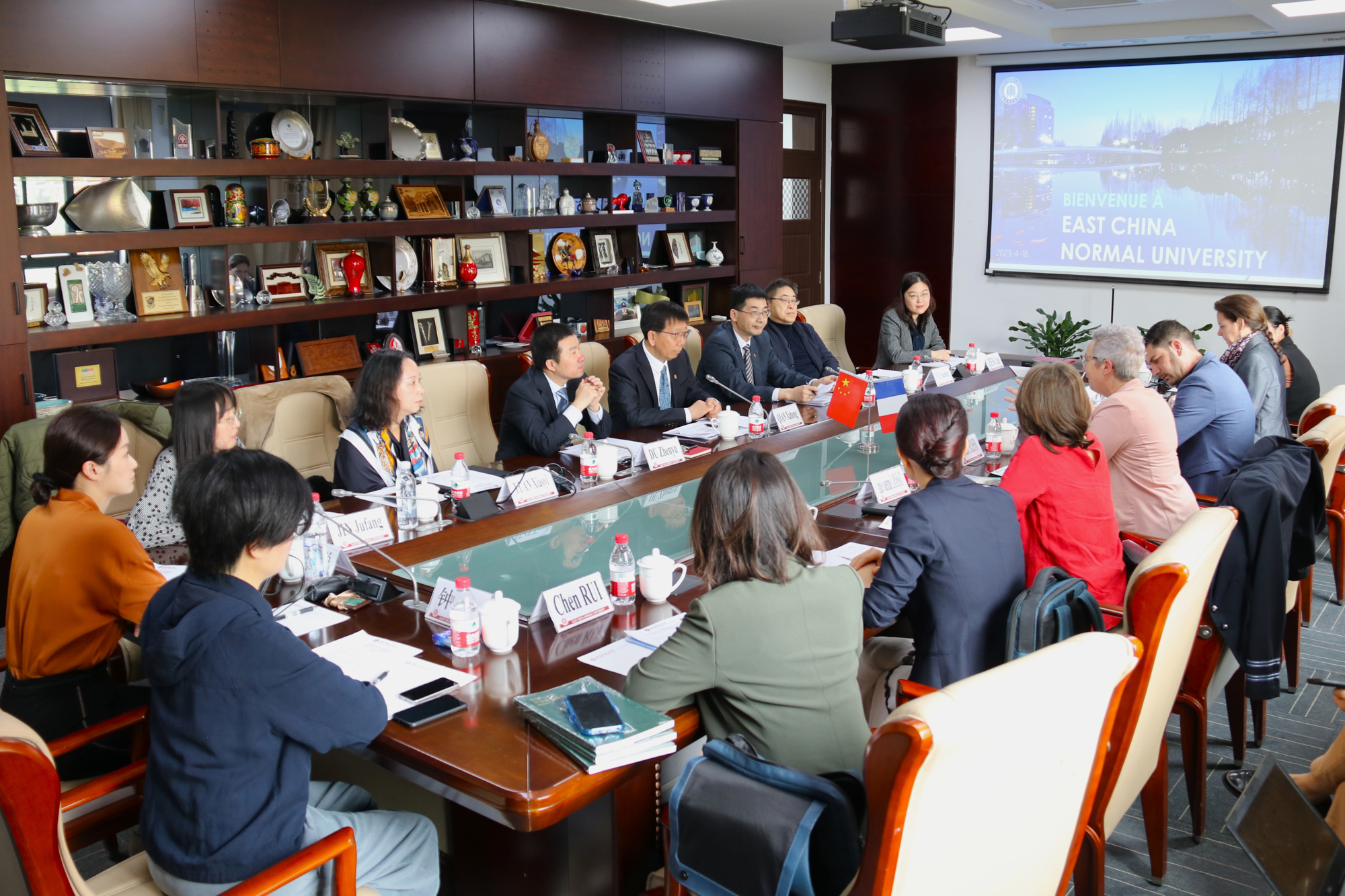 法国奥罗阿大区高等教育及新里昂中法大学代表团访问华东师大合影