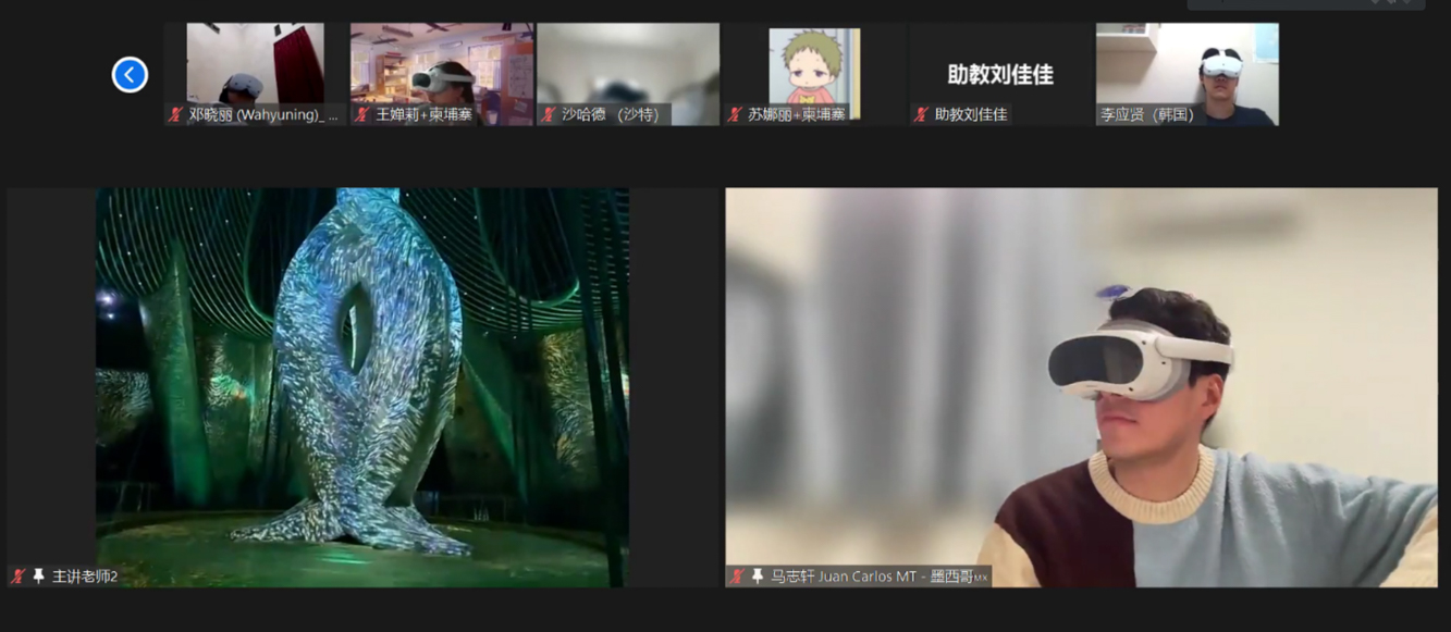 世界各地学员佩戴VR眼镜上课