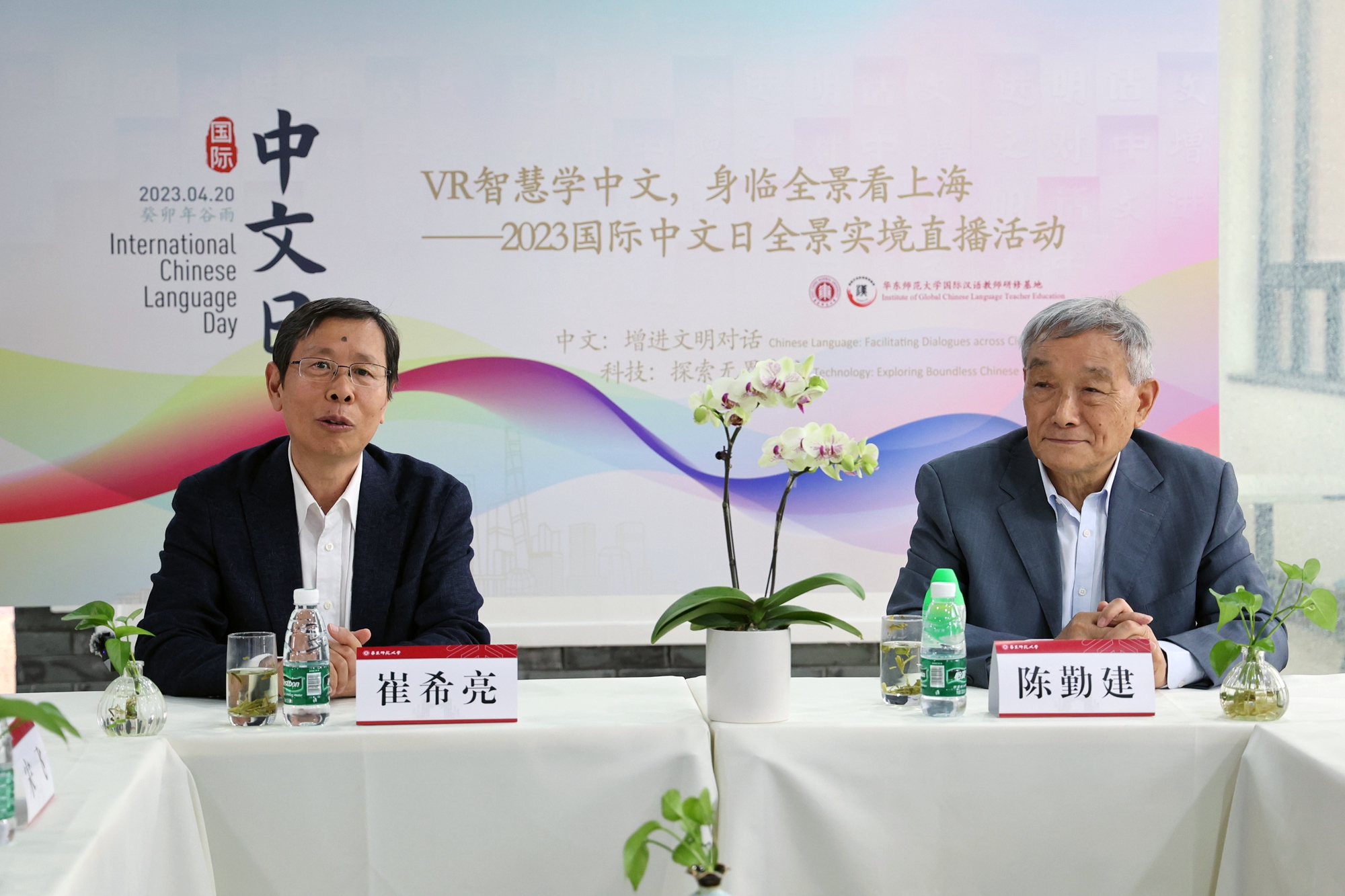 4月18日,主题为“VR智慧学中文,身临全景看上海”的2023年“国际中文日”全景实境直播体验营系列课程展示发布活动在万象城awcsport官网国际汉语教师研修基地一楼文化展厅举办,2000余名来自世界各地的观众在线上收看了这一盛会。