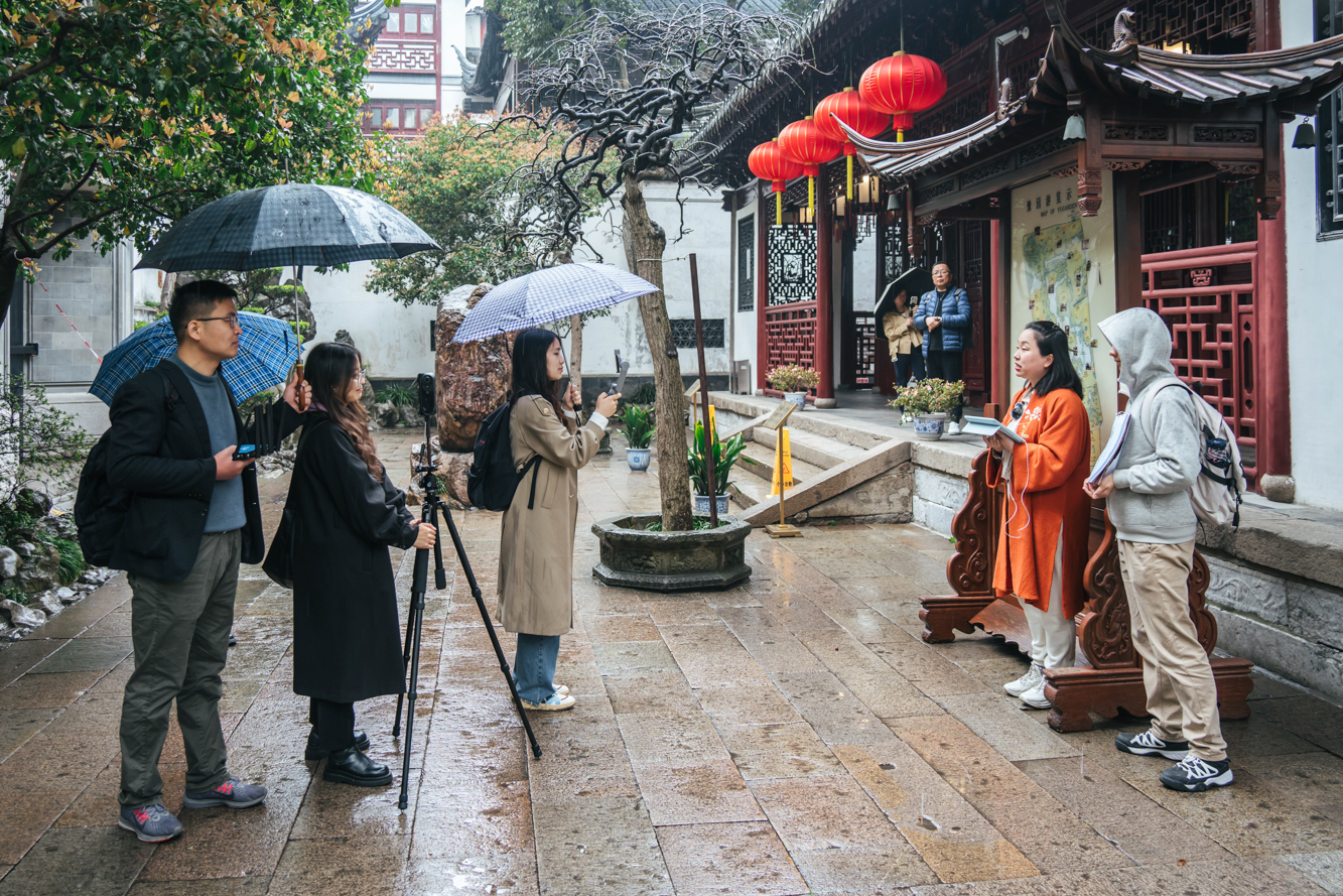 教师团队在豫园进行全景直播