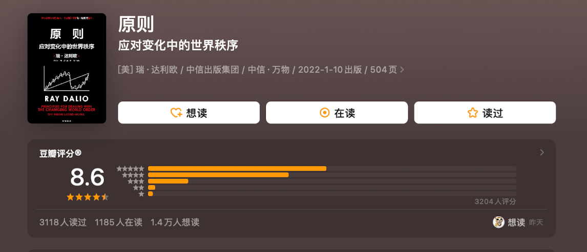 [美] 瑞·达利欧 著,崔苹苹、刘波 译,中信出版社,2022年版