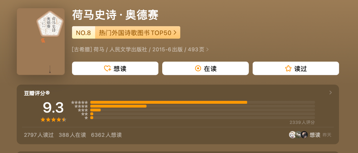 [古希腊] 荷马 著,王焕生 译,人民文学出版社,2015年版