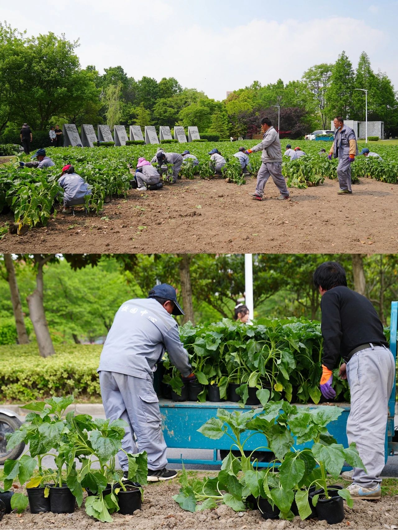 最近,两校区面积约1600㎡的24000多株向日葵已经种好了!顶着烈日,后勤保障部的40多位工作人员连续战斗了12个小时。