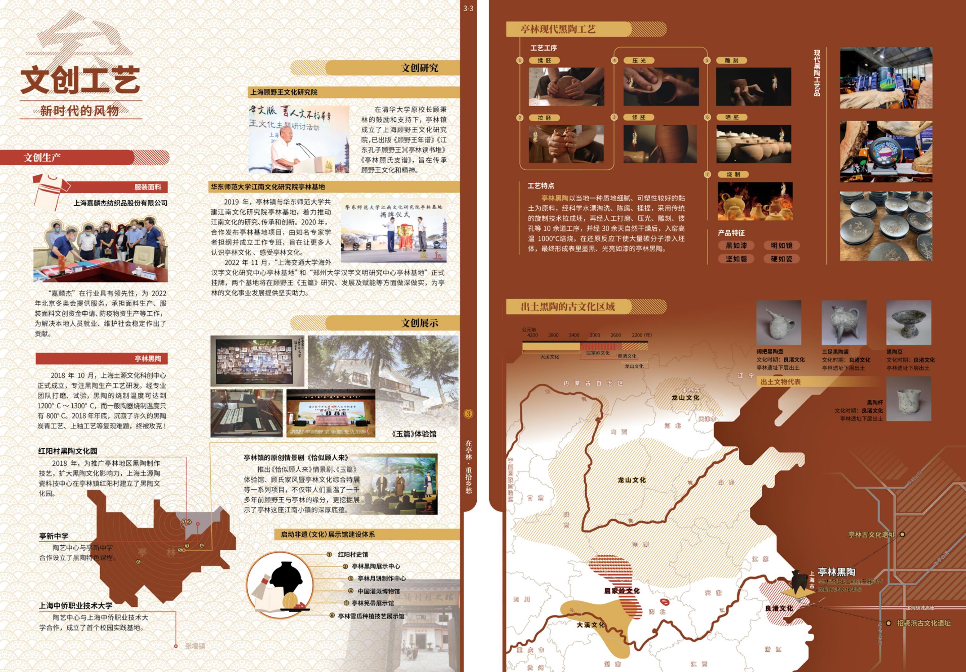 《亭林人文地图》在内容大纲、形式表达及其叙事衔接的融合设计上着力谋求可能的创新,强化图件多向度观察的文化表现张力和空间叙事力。就大纲编排而言,图集拓展了镇域人文地图集的架构方式——鲜明的叙事主题、自洽的图组逻辑、分层的写意写实(图组写意而图幅写实)——为专题地图集的主旨凝练、观点解说提供了范式指引;就形式表达而言,图集丰富了镇域人文地图集的可视化手法——叙事结构的视觉响应、多元空间的综合整合与虚实要素的符号协同——亦为专题地图集的信息设计提供了实践参考。而活页式的封套装帧方式,也给予不同阅读主体根据兴趣选择切入点的自由,更可为内容的更新和续编提供灵活的延伸接口。