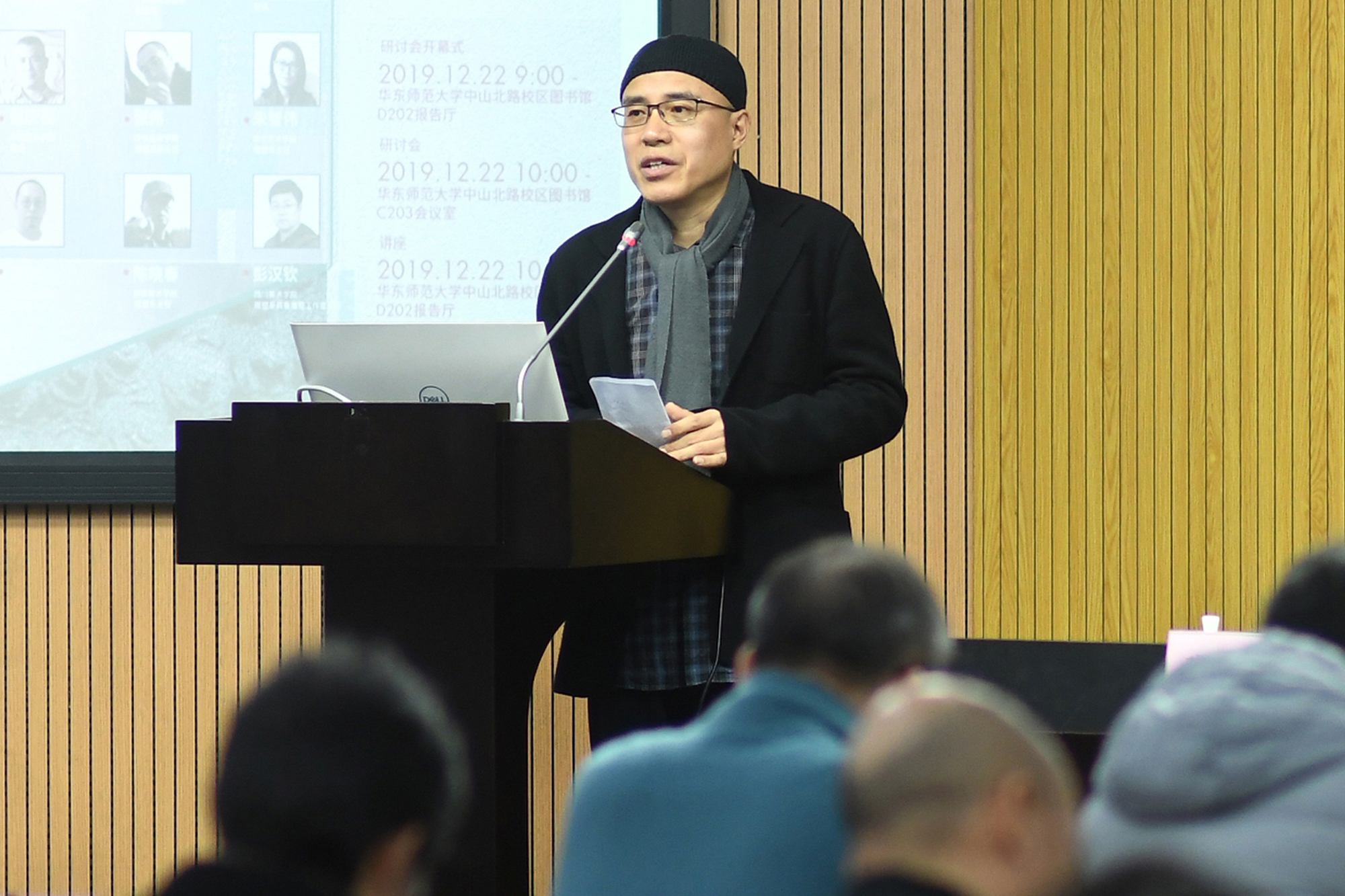 华东师大美术学院雕塑与公共艺术教研室主任王曜主持研讨会开幕式