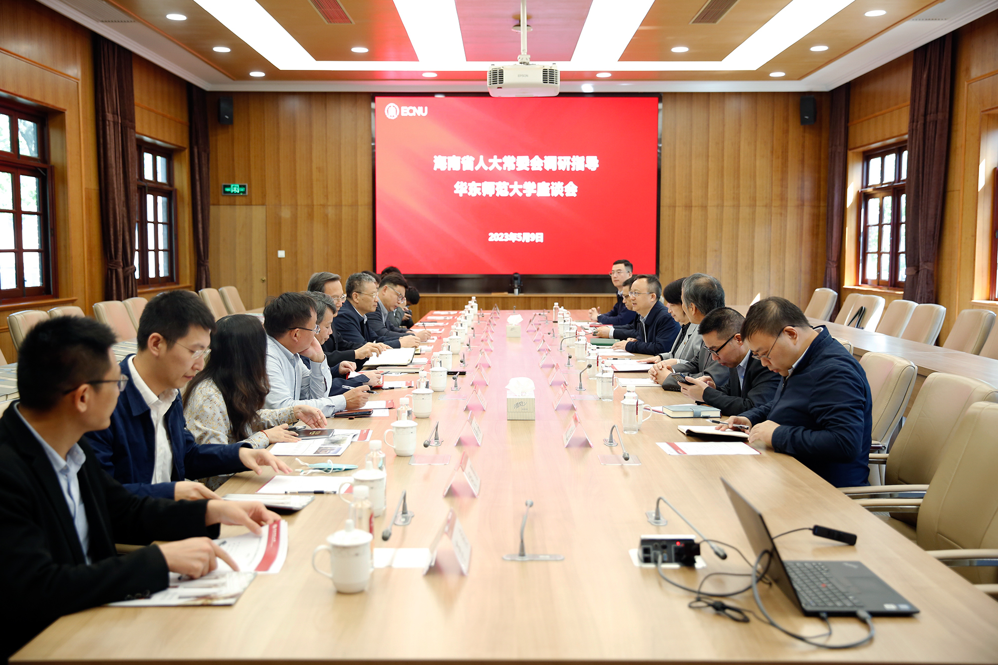 5月9日,海南省人大常委会党组书记、副主任李军率团访问华东师大,调研考察《子藏》编纂工作。校党委书记梅兵出席座谈会,会议由副校长雷启立主持。