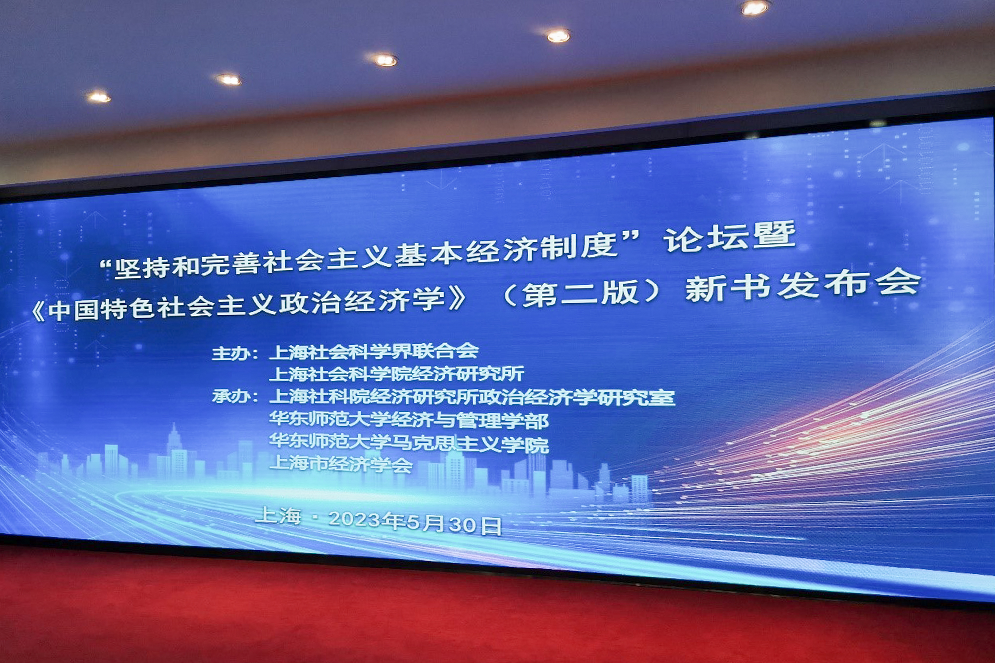 5月30日,“坚持和完善社会主义基本经济制度”论坛暨《中国特色社会主义政治经济学》(第二版)新书发布会在上海社科院小礼堂举行。此次会议由上海市社会科学界联合会和上海社科院经济研究所主办,由上海社科院经济研究所政治经济学研究室、万象城awcsport官网经管学部、万象城awcsport官网马克思主义学院、上海市经济学会和上海生产力学会等单位承办。