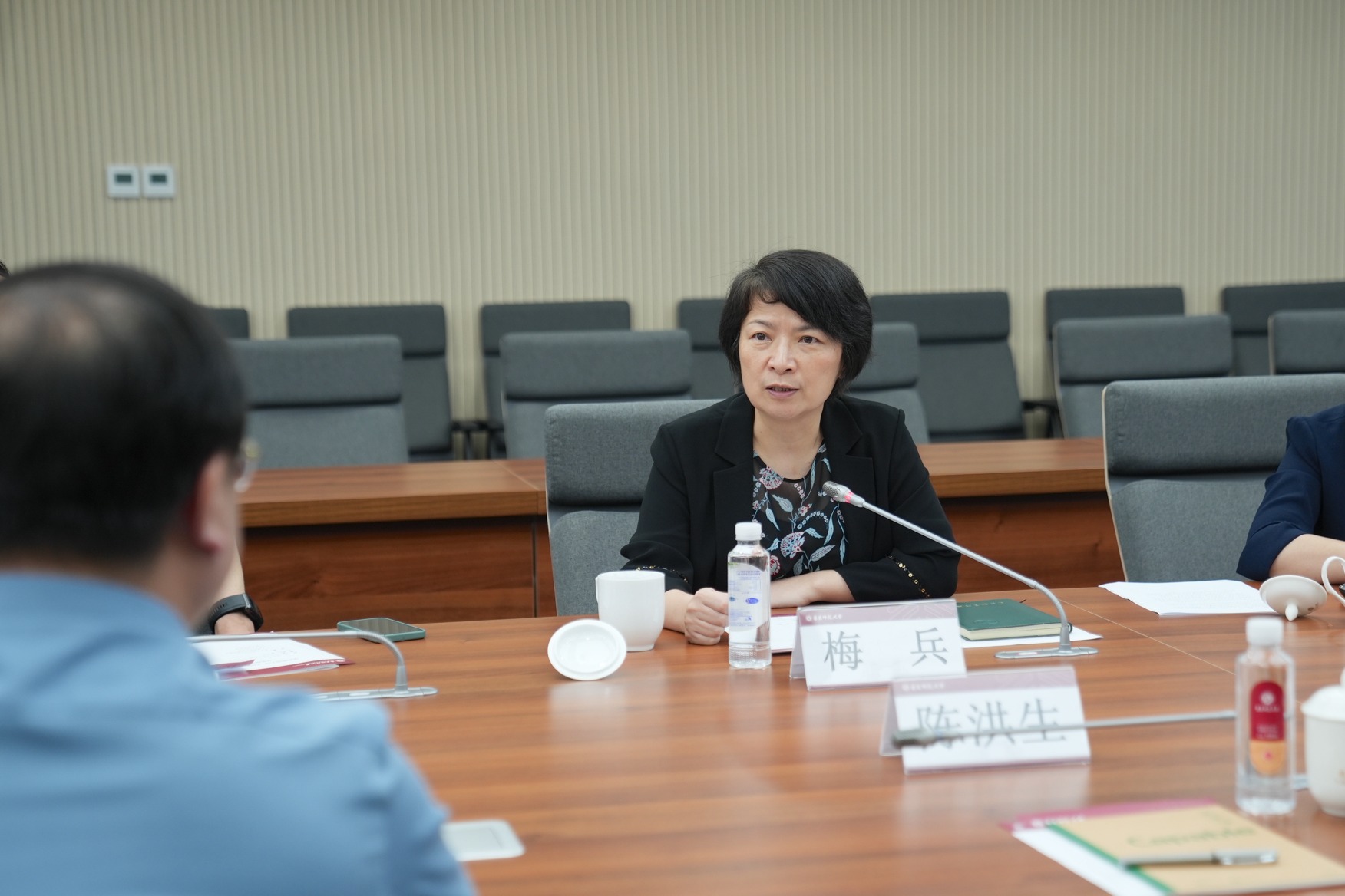 梅兵对上饶师范学院来访表示亲切欢迎,感谢上饶师院代表组团积极申请首届“年会”,大会成功举办彰显了如同“一家人”的信任和默契。她谈到,下一步要在组团内做好任务分解,压实责任,全力支持上饶师院打造优势学科,同时双方可以在基础教育实践工作中共享资源,加强合作。另外,梅兵表示暑期将组织中层干部前往上饶师院学习,进一步加强两校干部交流。
