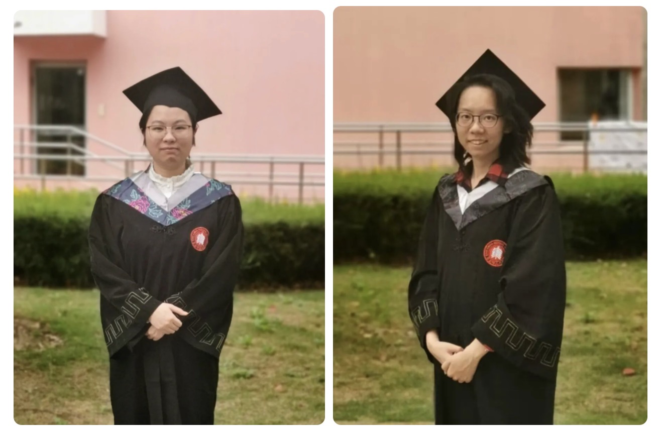 左起:周雨松、牟函蜜,多次获得奖学金,参与校级、国家级大创活动。