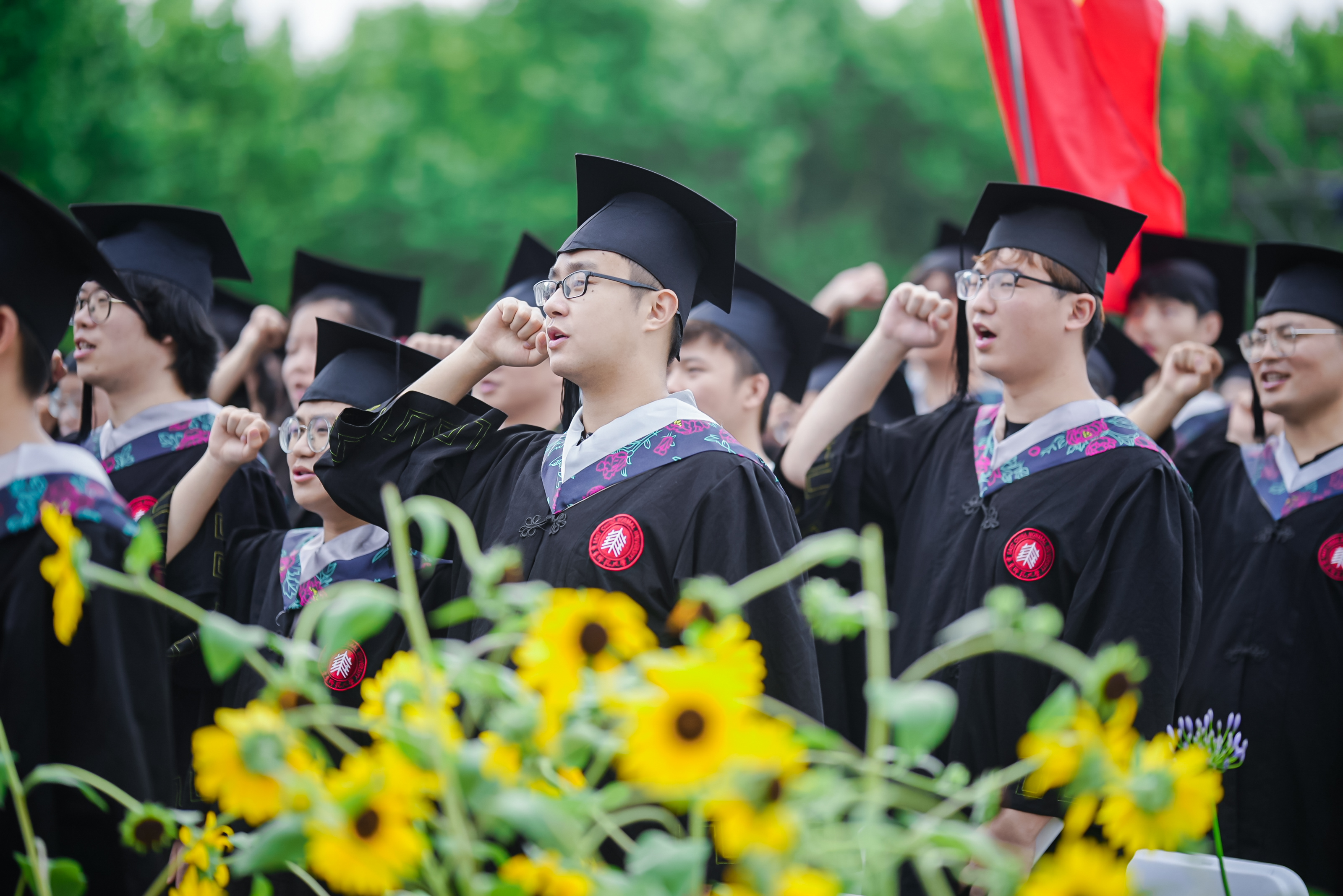 他希望同学们以梦为马、以善为翼,风雨兼程、止于至善。“每个人的自由而全面发展、中华民族的伟大复兴、人类社会的长治久安,你们将是参与者、创造者、见证者,这一切都将因你们的团结奋斗而实现!”