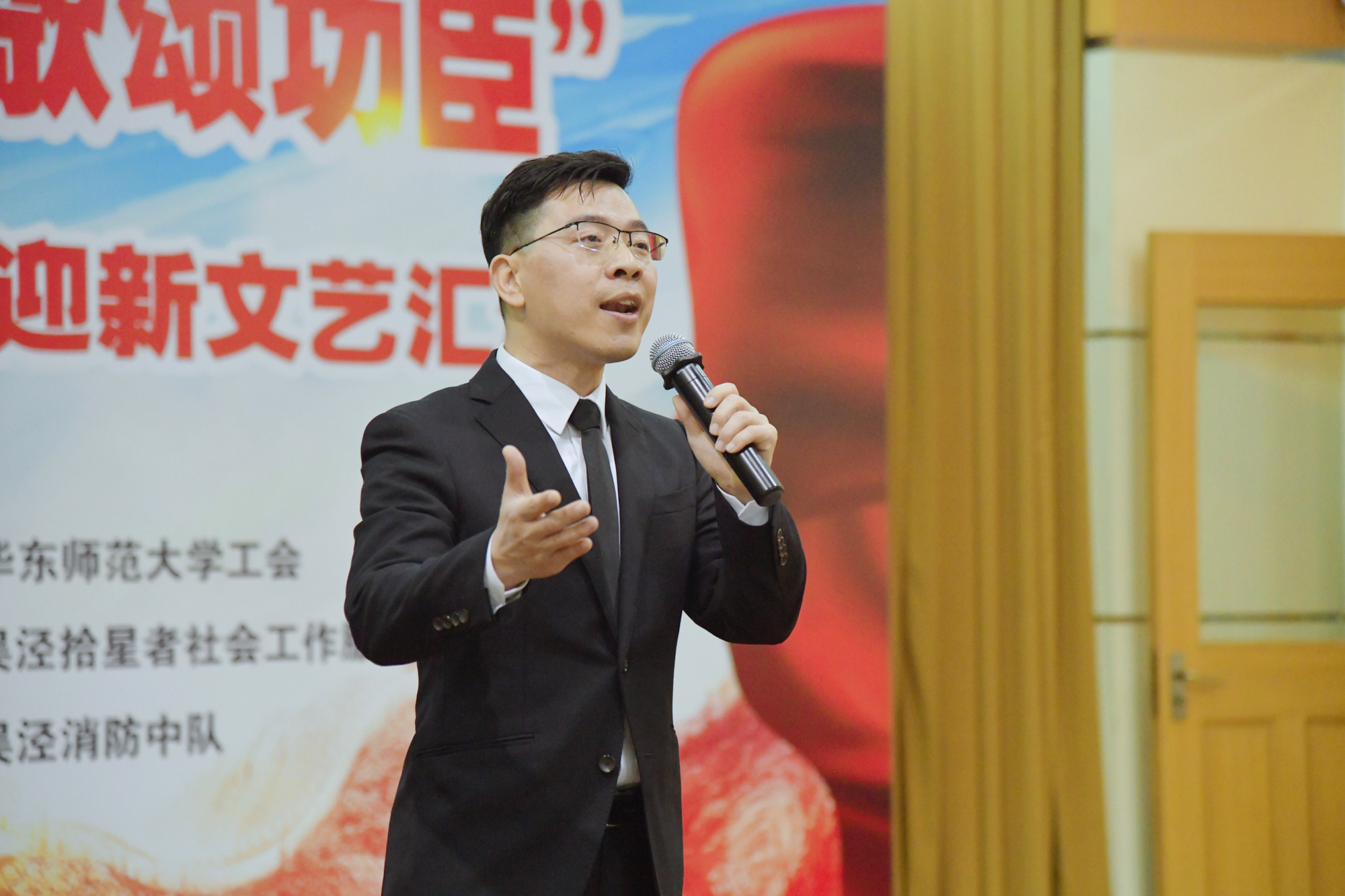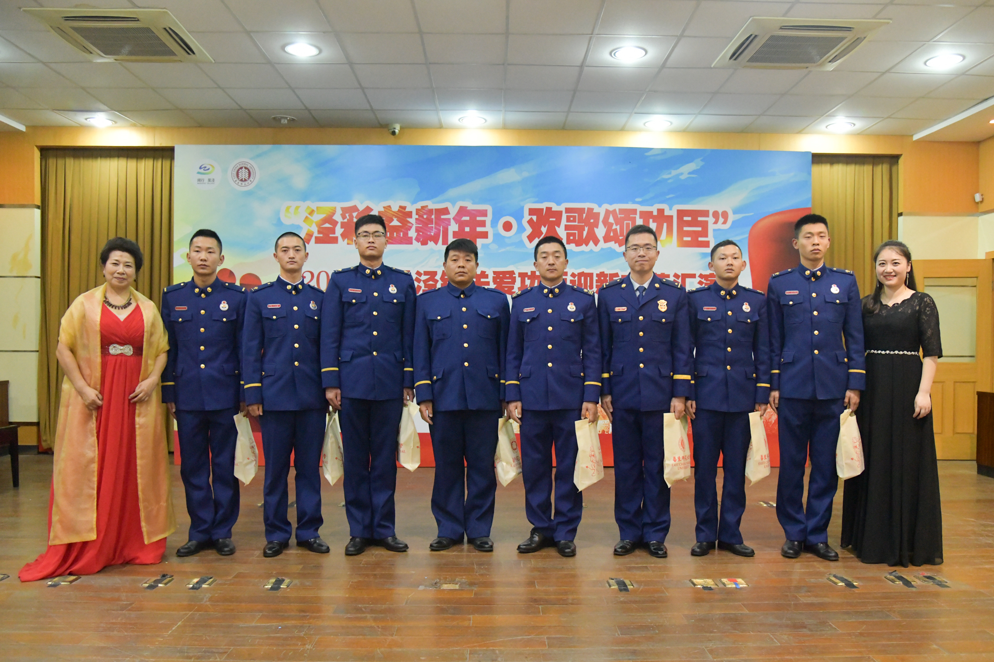 为发扬“拥军优属和拥政爱民”的光荣传统,校工会与吴泾镇双拥工作领导小组联合主办的以“泾彩益新年,欢歌颂功臣”为主题的2020年吴泾镇关爱功臣迎新文艺汇演在吴泾镇社区党校举行。来自吴泾镇的功臣老兵及其家属代表、吴泾消防中队消防员代表、周边社区文艺骨干及居民代表百余人出席。我校音乐学院声乐副教授兼“月之声”教工艺术团艺术总监李明月、校教职工合唱团指挥徐歆,吴泾镇社发办主任张杰、吴泾镇社区事务受理服务中心常务副主任兼吴泾镇退役军人服务站站长谈权飞、吴泾消防中队中队长助理张焕迪、拾星者社会工作服务中心总干事兼吴泾镇社会组织服务中心联合支部书记肖庆出席活动。我校传播学院本科生向林浩和李舜瑶主持活动。