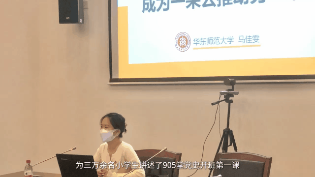 “2020年以来,我所在的‘云辅导’团队面向经济欠发达地区输送线上教育资源,服务农村留守儿童百余人。在建党百年之际,由华东师大发起的大学生志愿服务队,前往全市爱心暑托班办班点,为三万余名小学生讲述了905堂党史开班第一课,为孩子们扣好人生的第一颗扣子。用一朵云推动另一朵云,以一棵树摇动另一棵树。在我看来,这就是一代代师大青年接力浇灌的幸福之花、接力传承的教育力量。”