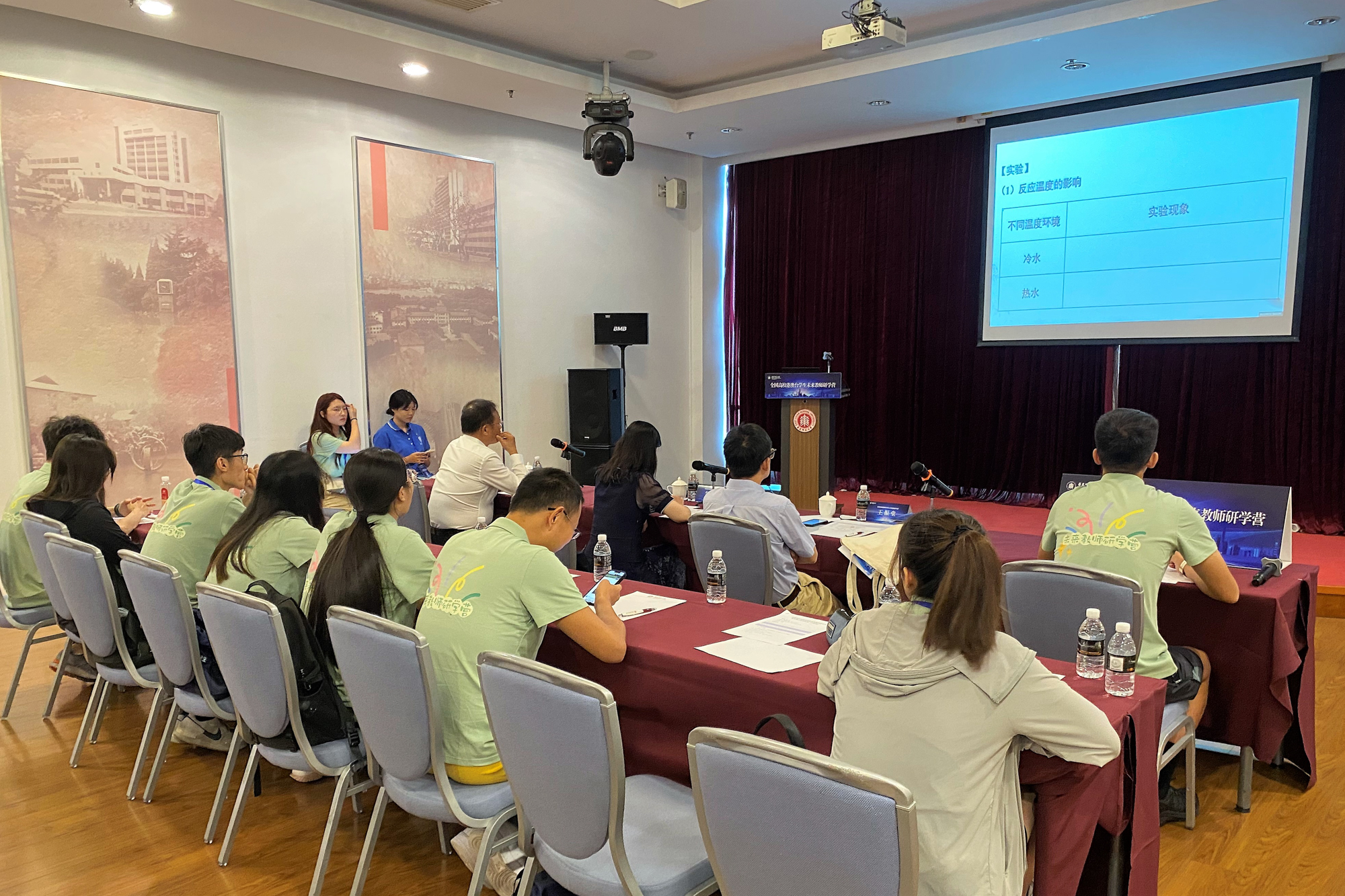 开幕式后,营员们分组进行教学说课展示,并同由一线教学名师、名校校长、高校教育专家等组成的专家团进行现场互动交流。同学们踊跃发言,围绕教学重点呈现、教学拓展资源、课堂管理技巧等方面展开深入探讨,专家评委也予以热情回应,现场思维活跃、气氛热烈。多种学科、多个学段、多样方法、多元设计在这里碰撞出思维的火花,研讨教学设计与课堂改进的方法思路。