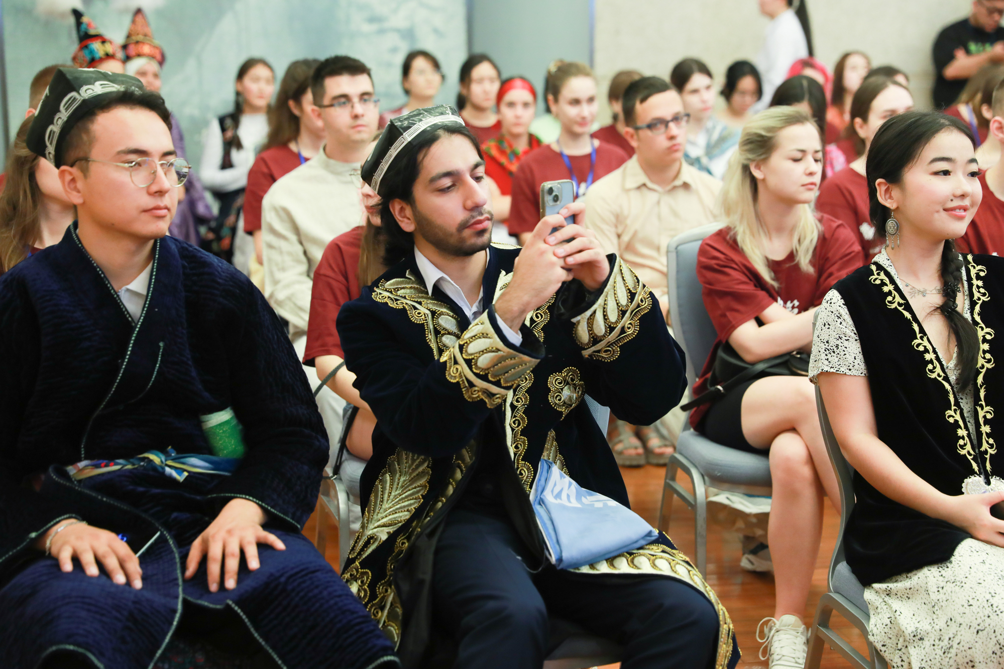 在热烈的掌声中,戴立益宣布暑期学校启动并向学员授旗。来自上合成员国哈萨克斯坦、吉尔吉斯斯坦、俄罗斯、塔吉克斯坦、乌兹别克斯坦,上合观察员国白俄罗斯和活动主办方中国的学生代表们身穿各国民族服装,共同接过上合暑期学校旗帜并缓缓展开,象征2023年活动的正式启动。