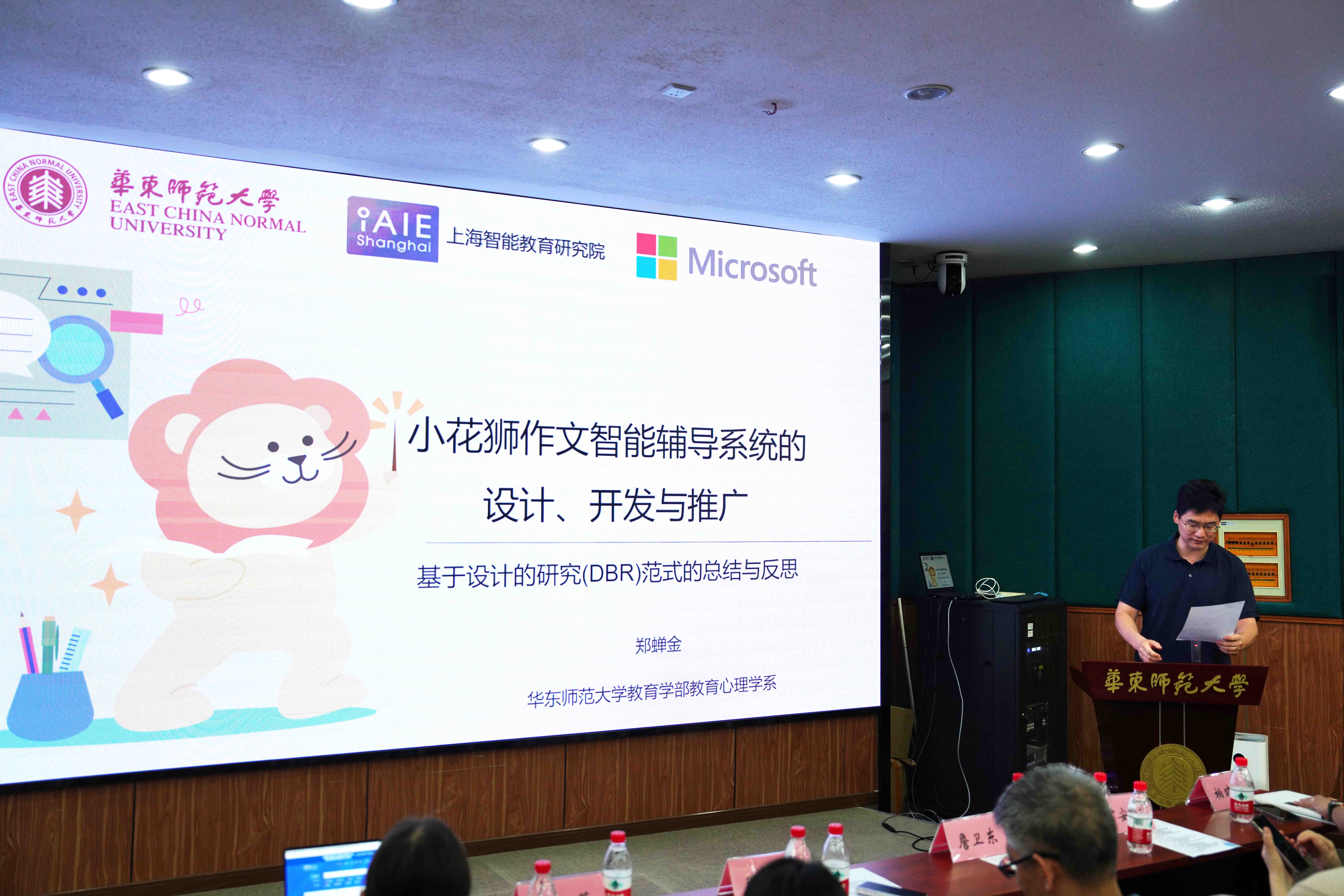 华东师大教育心理学系郑蝉金副教授作了主题为“小花狮作文智能化辅导系统的设计、开发与推广”的报告。郑蝉金副教授介绍了项目开发使用的工作方法——基于设计的研究(DBR)范式,随后介绍了“小花狮“系统完整的研发过程,以及其中多个方面的迭代。