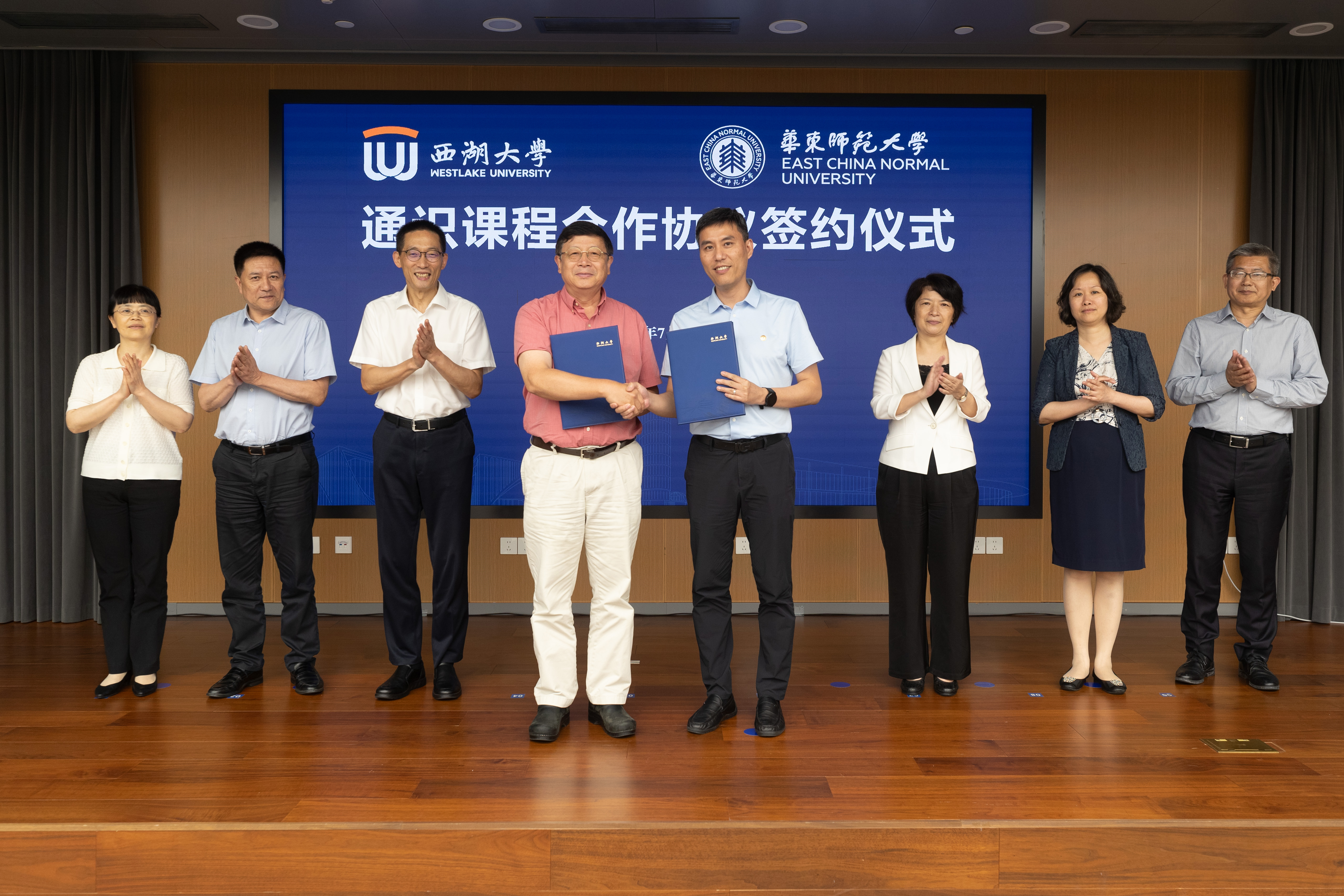 党委常委、副校长、党委组织部部长程静,学术委员会秘书长唐玉光;西湖大学党委书记董清源,副校长、学校秘书长朱晓芸等共同见证了签约仪式。