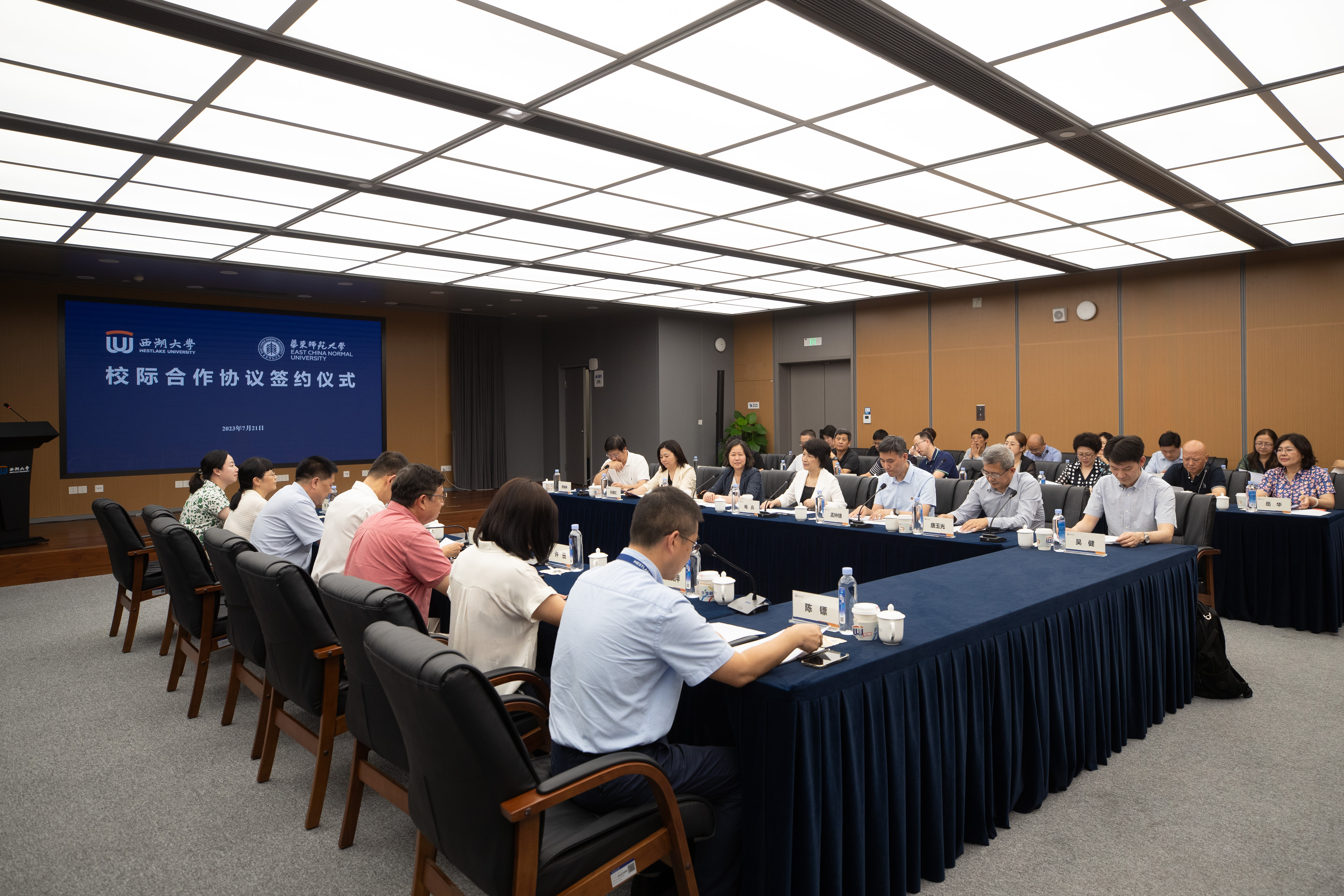 签约仪式上,施一公校长详细介绍了西湖大学的办学机制、人才引进、学生培养以及在科技评价标准等方面的探索和尝试。他特别提到,因为爷爷施平曾在1978年至1984年担任华东师大党委书记,他对华东师大倍感亲切,也非常感谢华东师大此前对西湖大学的支持,“未来两校将在科学研究和人才培养等方面通力合作,为中国高等教育改革探索更多、更好的可能”。
