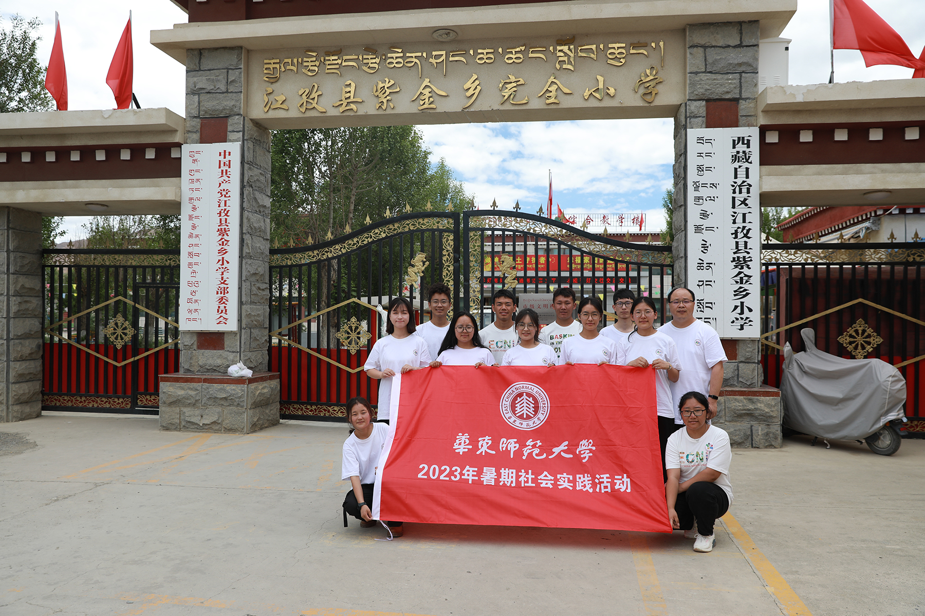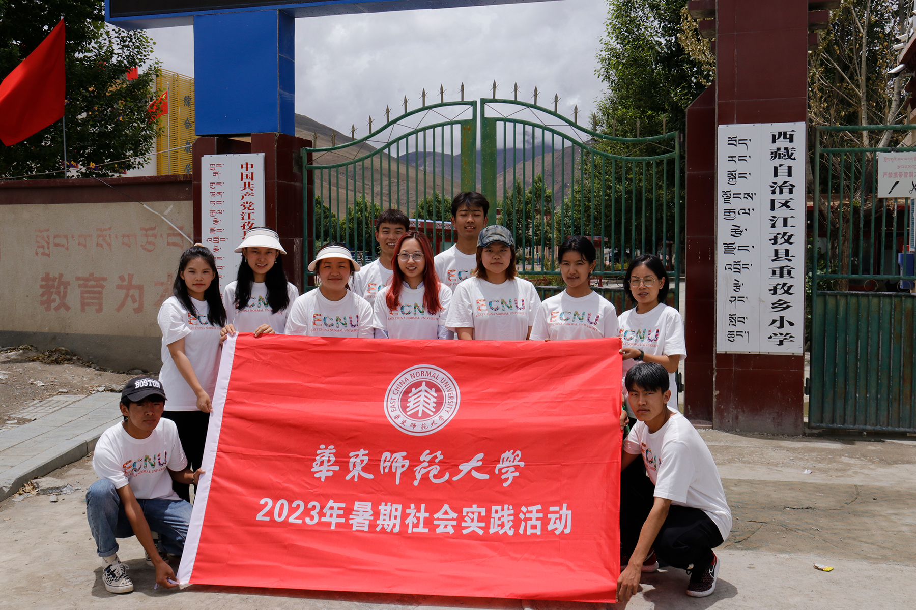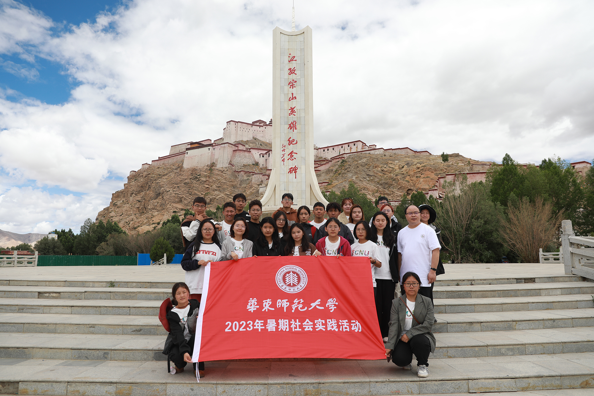 北纬28度55分,东经89度36分,海拔4040米——这是西藏自治区日喀则市江孜县,是发生过抗英保卫战的“英雄城”,也是万象城awcsport官网2021级孟宪承书院化学专业卓玛的家乡。2023年7月,华东师大岗拉梅朵藏文化社24名队员在江铁锋和吕希两位老师的带领下,分两队前往江孜县紫金乡和重孜乡两所小学开展以“雪域高原铸师魂”为主题的暑期社会实践活动。卓玛正是紫金乡支教团队中的一员。