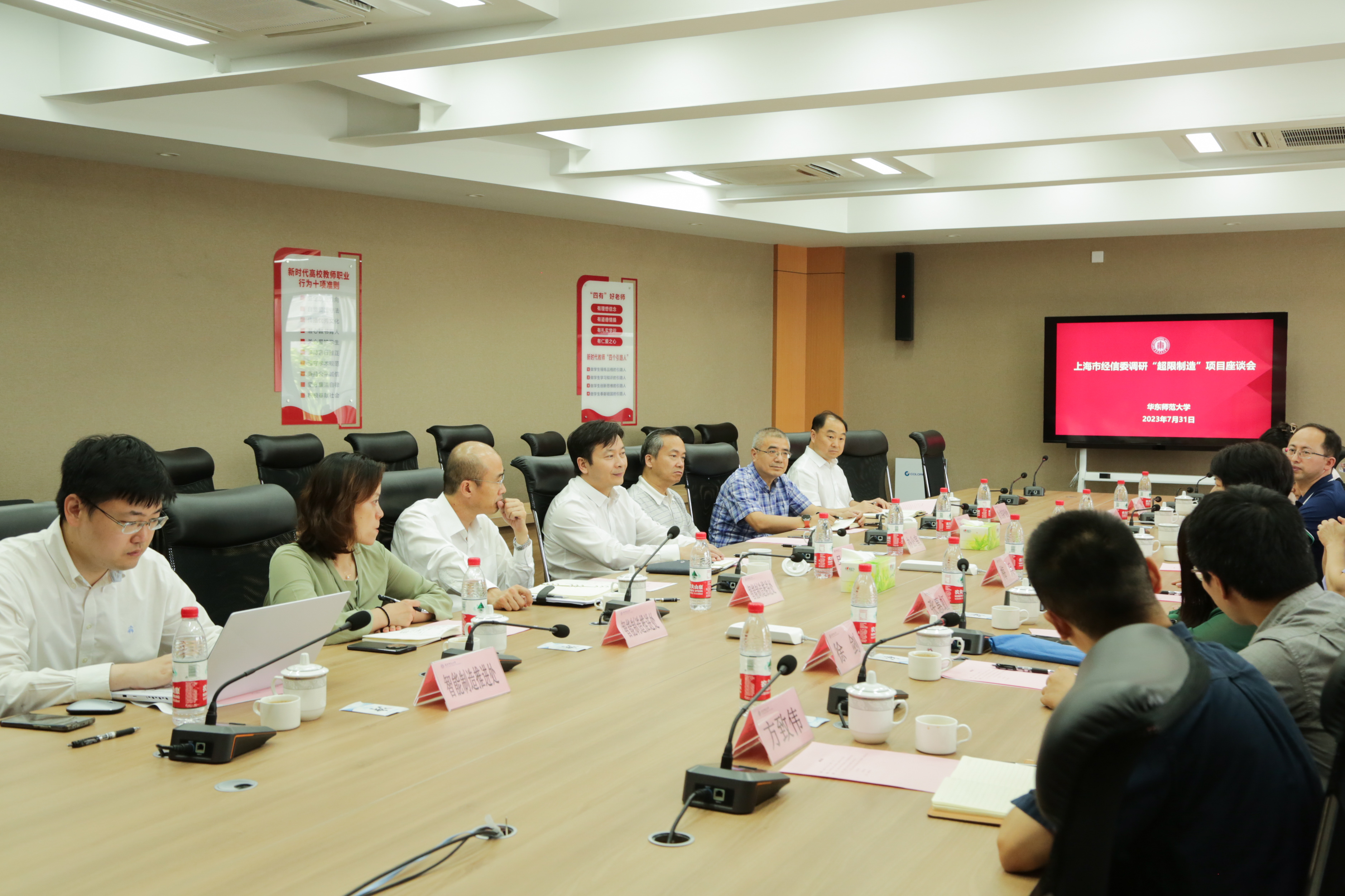 7月31日,上海市经济信息化委主任吴金城率团走访华东师大,调研上海市市级科技重大专项超限制造技术平台。华东师大党委书记梅兵、副校长施国跃陪同调研。