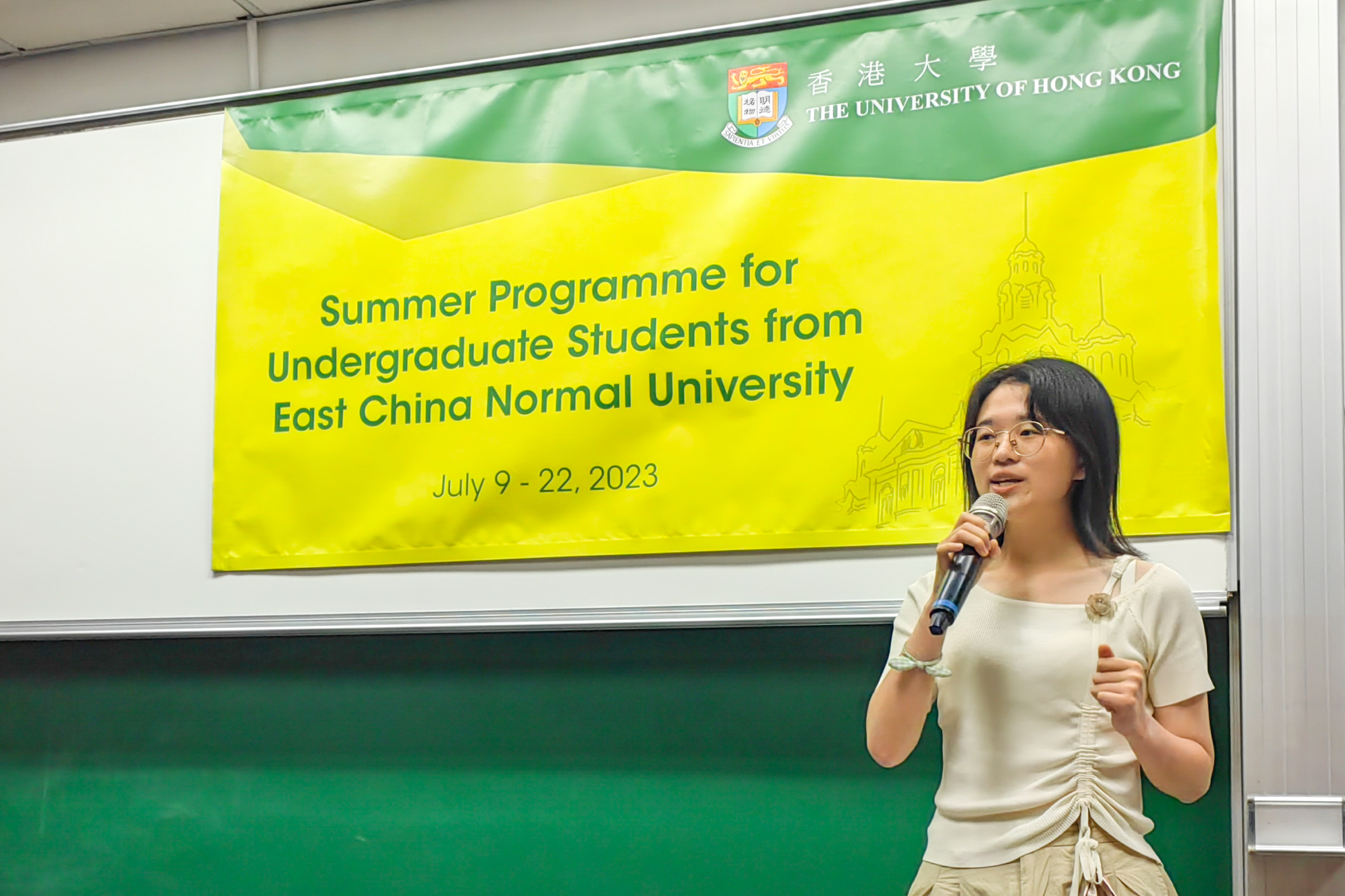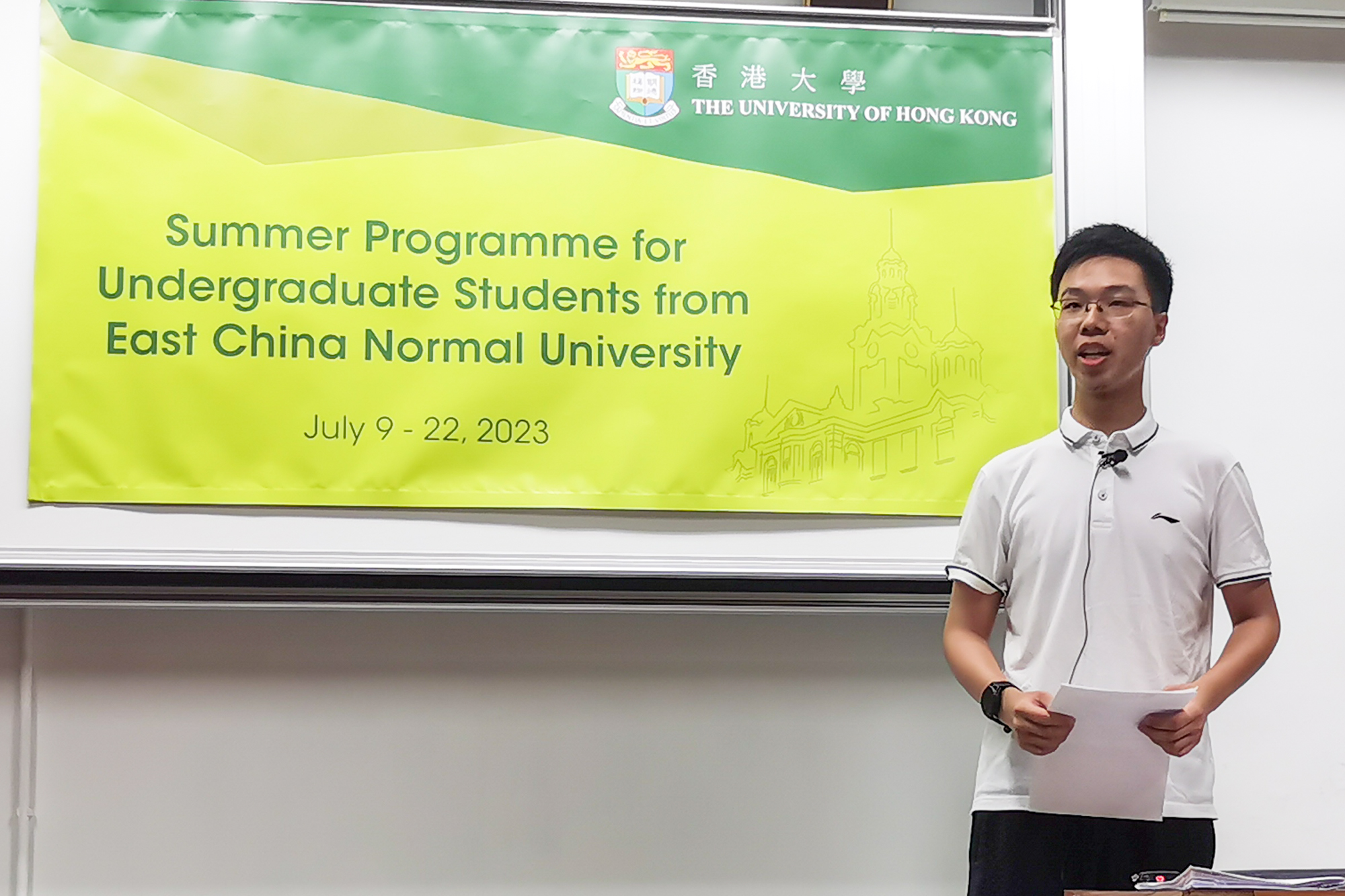 7月10日,在开班仪式上,文学院Michael LUK教授代表香港大学表达了对师大学子的欢迎,介绍了港大的历史和代表人物,希望同学们在两周的时间中学有所成、学有所获。华东师大地理科学专业本科生江东翼代表师大学子表达了对项目的期待,感谢两校为交流合作付出的努力。
