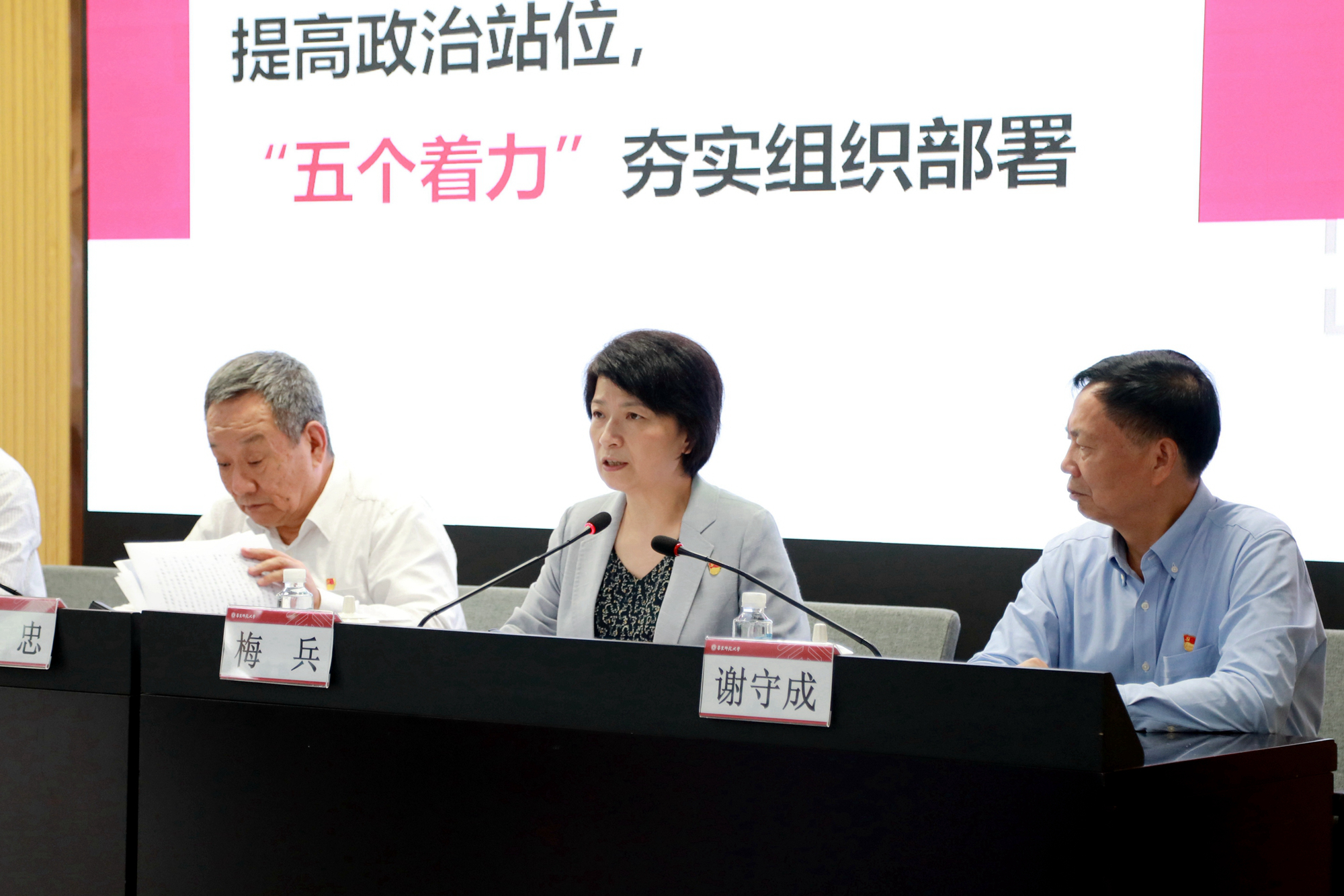 梅兵强调,下一步,校党委将重点在三个方面持续用力:一要进一步加强理论武装,坚持和完善主题教育形成的良好学风,坚持“第一议题”制度,建强马克思主义学科群,持续深化主题教育理论学习成果;二要进一步加强调查研究,整合优化线上模块,健全“接诉即办”机制,深化落实党员领导干部联系师生制度,持续发挥调查研究推动高质量发展的重要作用;三要进一步加强成果转化,持续抓好检视整改,加强制度建设,以制度形式来规范行为、固化成果,推动学校改革发展取得新成效。她表示,我们要以总结巩固主题教育成果和召开学校第十四次党代会为契机,凝心聚力、担当作为、真抓实干,以更大的改革勇气和创新魄力,以实实在在的整改举措,推动学校各项事业向着高质量发展目标迈进,为更好服务强国建设、民族复兴做出新的更大贡献。