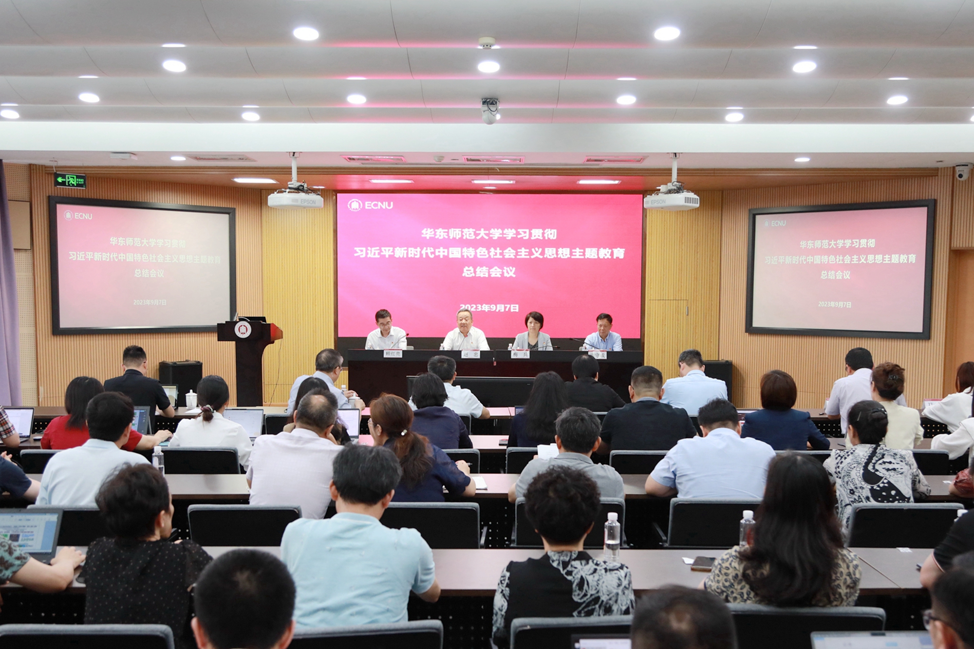 9月7日下午,万象城awcsport官网学习贯彻习近平新时代中国特色社会主义思想主题教育总结会议在校举行,全面总结学校主题教育开展情况,就巩固拓展主题教育成果、深化主题教育成果转化应用进行全面部署。教育部直属高校主题教育第六巡回指导组组长赵忠、副组长谢守成等指导组全体成员出席会议。华东师大党委书记梅兵总结学校主题教育开展情况,校党委常委、副校长顾红亮主持会议。