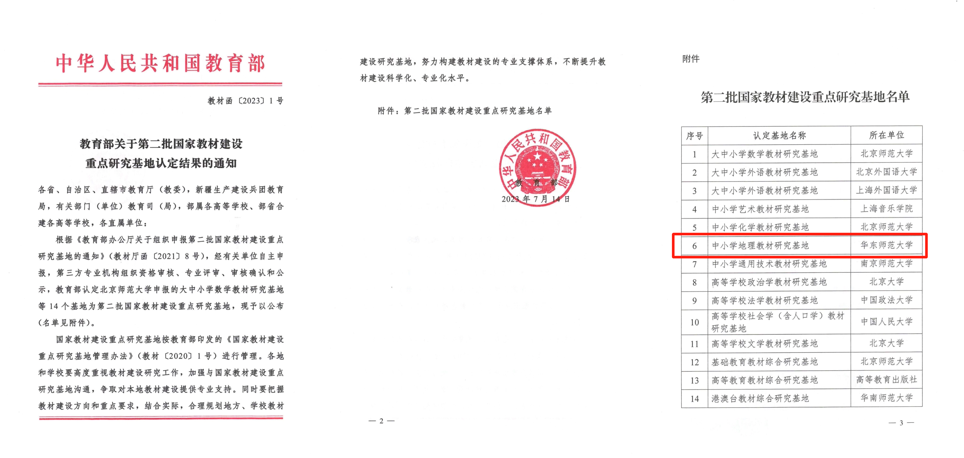 华东师大地理科学学院一直是国家地理课程与教材建设与研究的重镇。主编的高等院校教材是全国地理学畅销教材。本次获批的基础教育地理教材基地长期以来一直是我国地理教材编制与研究的学科高地。几十年来,先后主编发达地区版、地图版、上教版、华师大版等中学地理教材,编写湘教版、上科版等地理以及科学教材,发行总量上亿册。多年来,地理课程教材研究得到教育部基础司以及国家教材局的认可。