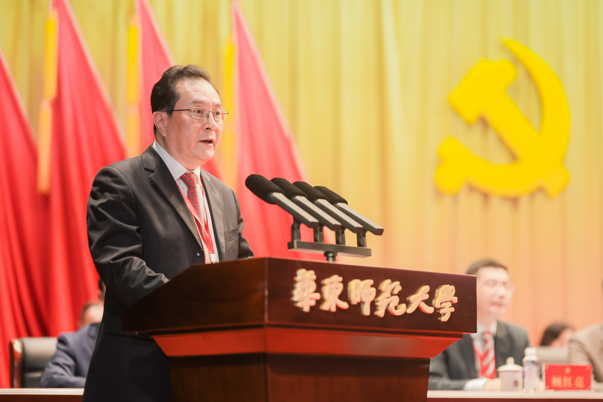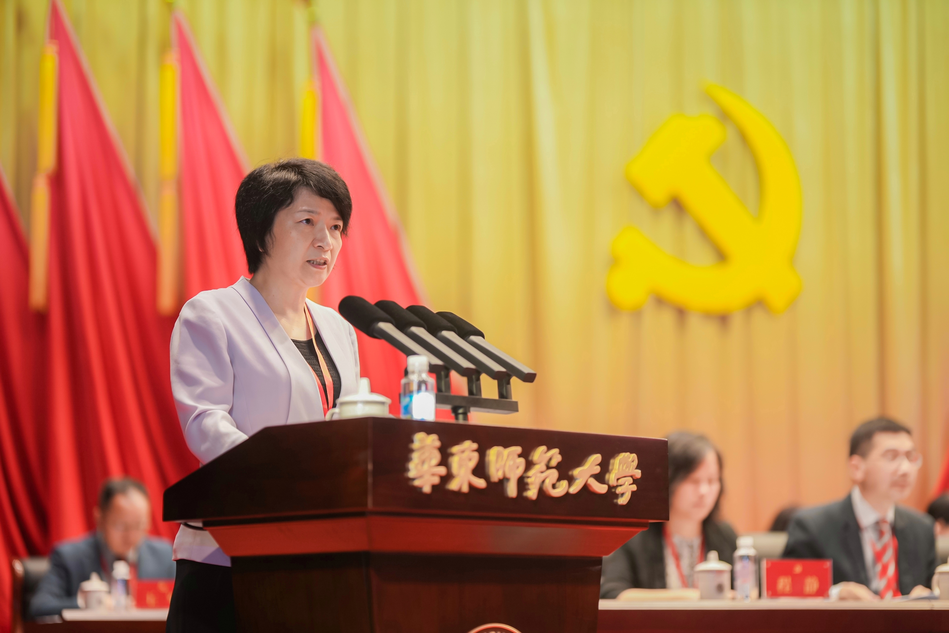 受教育部党组委派,黄小华同志向大会的召开表示热烈祝贺。他充分肯定了华东师大作为新中国成立后组建的第一所社会主义师范大学,为中国教育事业和经济社会发展作出的重要贡献。他指出,学校在各项工作取得显著成绩,并朝着加快建设引领育人创新的中国特色世界一流的综合性研究型大学目标持续推进。他希望新一届党委班子进一步提高政治站位,把巩固深化主题教育成果作为当前和今后一个时期的重要任务,深刻领悟“两个确立”的决定性意义,增强“四个意识”,坚定“四个自信”,做到“两个维护”,坚持不懈用习近平新时代中国特色社会主义思想凝心铸魂,始终在思想上、政治上、行动上同党中央保持高度一致。他指出,要把党的领导融入办学治校全过程、各方面,牢牢把握办学正确政治方向。严格执行党委领导下的校长负责制,切实加强领导班子干部人才队伍和基层党组织建设,做好新时代意识形态工作,为学校改革发展稳定提供坚强的政治和组织保证。他指出,要立足“两个大局”,胸怀“国之大者”,坚持“四个面向”。聚焦教师教育主责主业,充分发挥教师教育特色,继续为国家培养培训高素质复合型教师队伍,强化高水平的自主研究和高质量的有组织科研“双轮驱动”,在服务战略所需、人民所盼、区域所求、发展所急上发挥更加重要的作用,为全面建设社会主义现代化国家,全面推进中华民族伟大复兴作出新的更大贡献。