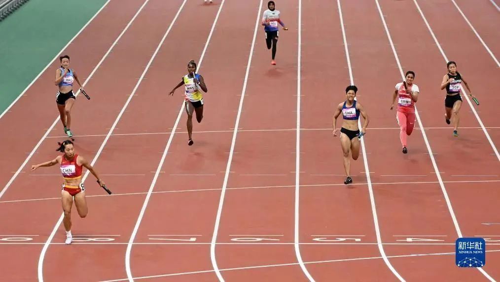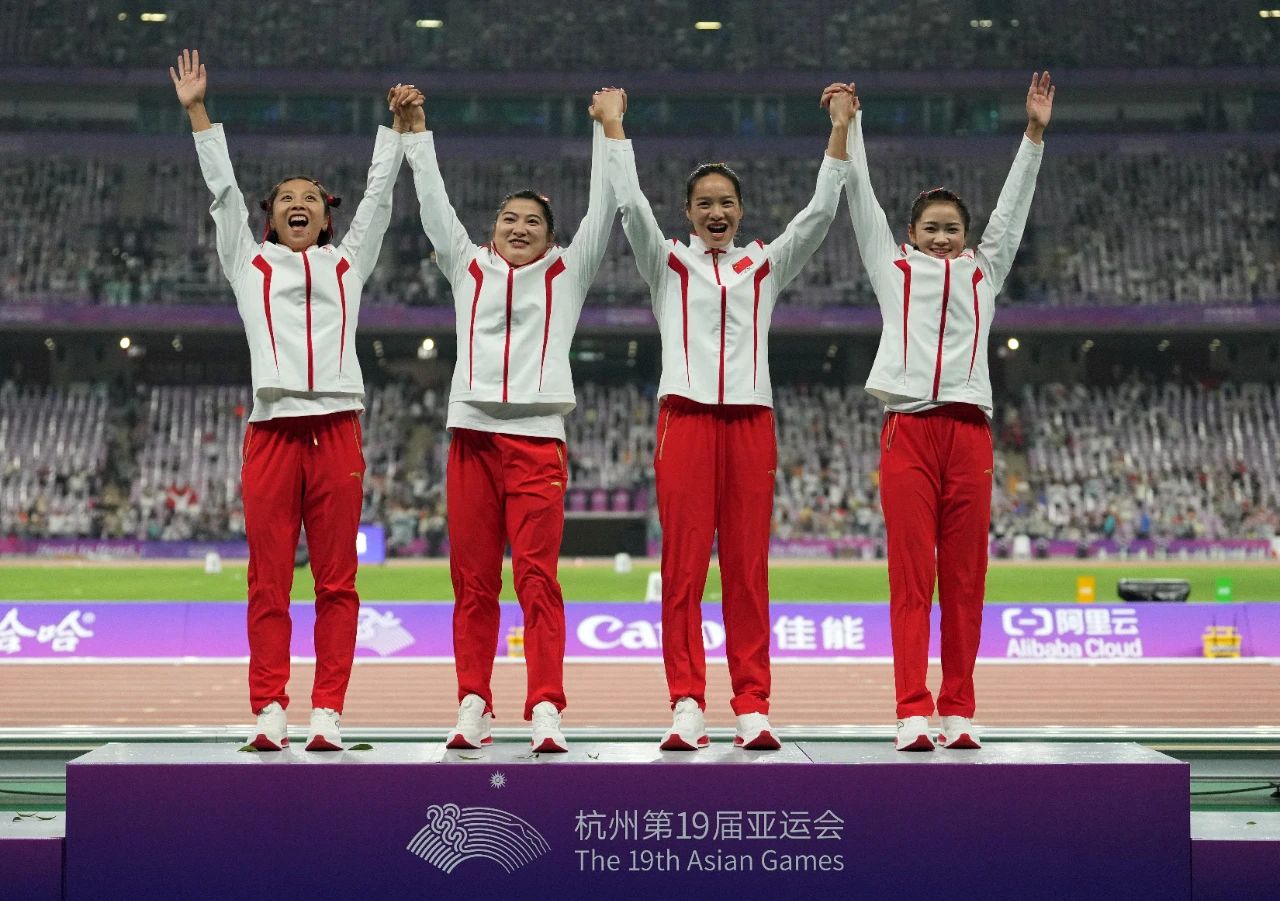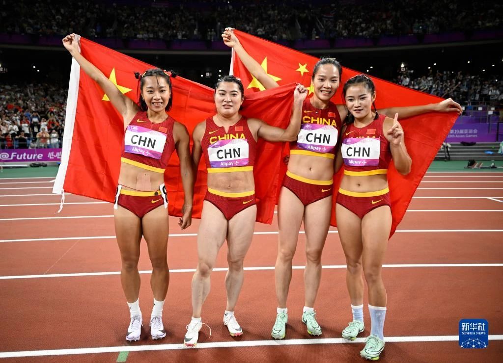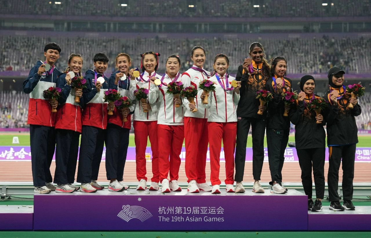 由于杭州亚运会女子接力的参赛队伍只有7支,女子接力直接举行决赛。在7支队伍中,这个赛季成绩最好的队伍,就是中国女子接力队。
