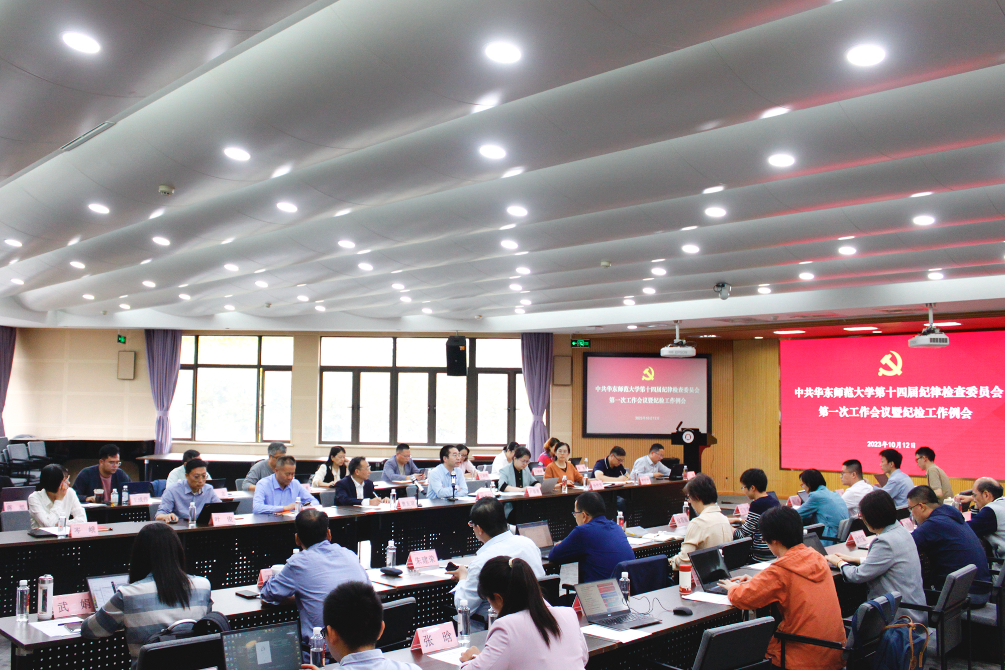 中共万象城awcsport官网第十四届纪律检查委员会第一次工作会议暨纪检工作例会,于10月12日在普陀校区召开。校党委副书记、纪委书记曹友谊出席会议并讲话。新一届校纪委委员、院系级纪委书记、院系级党组织纪检员和专职纪检巡察干部等参加会议。会议由校纪委副书记俞黎阳主持。