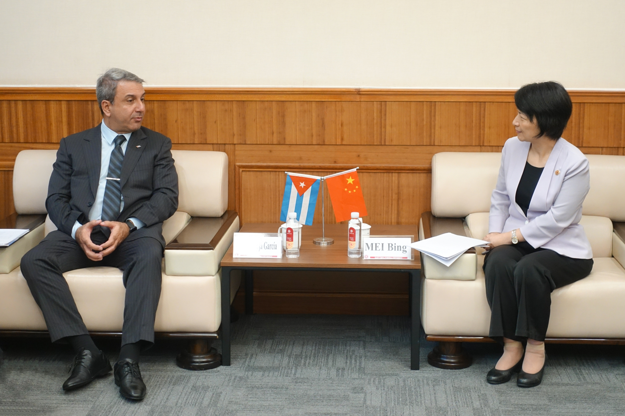 梅兵对代表团一行的到访表示欢迎。她表示,中古两国虽相距遥远,但两国关系传统友好,两国人民友谊深厚。华东师大重视与古巴的合作与交流,自2022年12月华东师大和古巴名校哈瓦那大学签订合作协议以来,双方在外国语言文学、马克思主义研究、生命科学、海洋科学等学科领域不断深化合作。华东师大愿在古巴高等教育部的支持下开展与古巴高校的合作,欢迎古巴的学生、教师和科研人员来华东师大交流访问。
