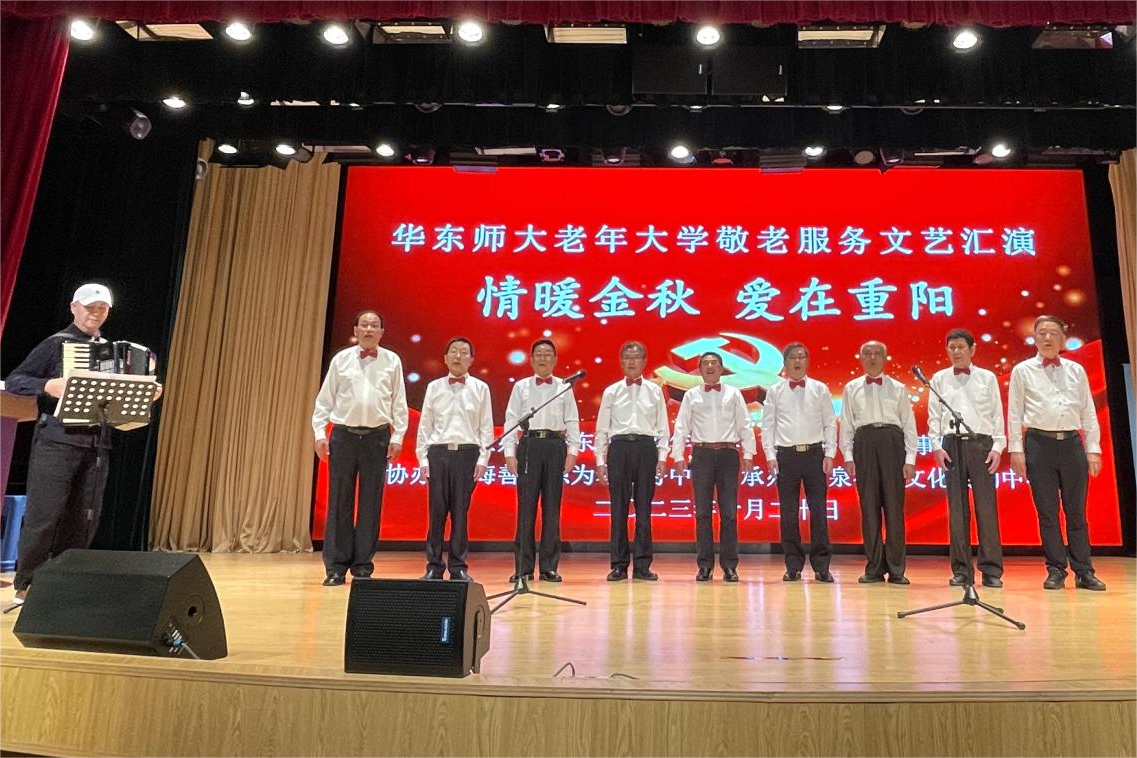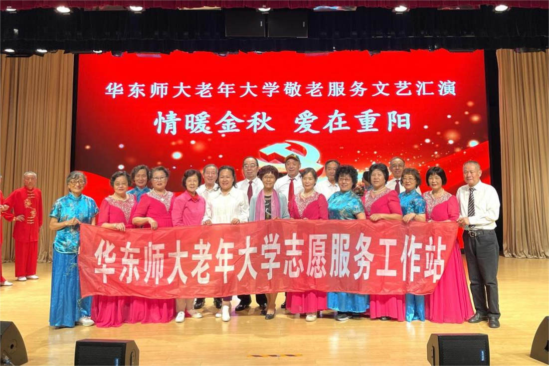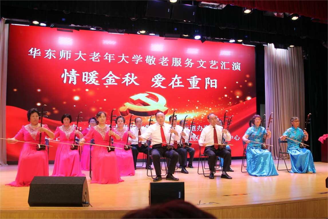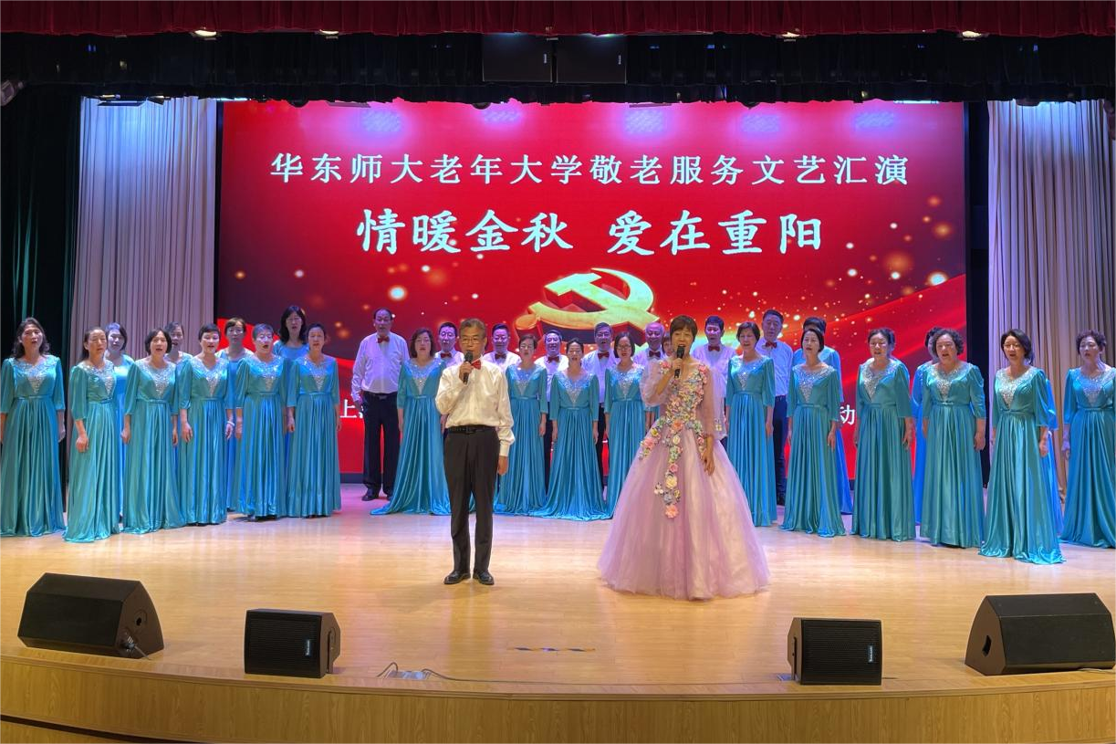 金秋十月,丹桂飘香。10月20日下午,在重阳节来临之际,华东师大老年大学组织师生志愿服务队赴普陀区甘泉街道社区文化活动中心,开展敬老服务进社区文艺汇演。甘泉路街道办事处副主任顾旻娜、华东师大老年大学常务副校长裴建华、甘泉社区服务办主任施明浩、上海善康源为老服务中心负责人毛建农以及甘泉社区居民200余人出席并观看演出。