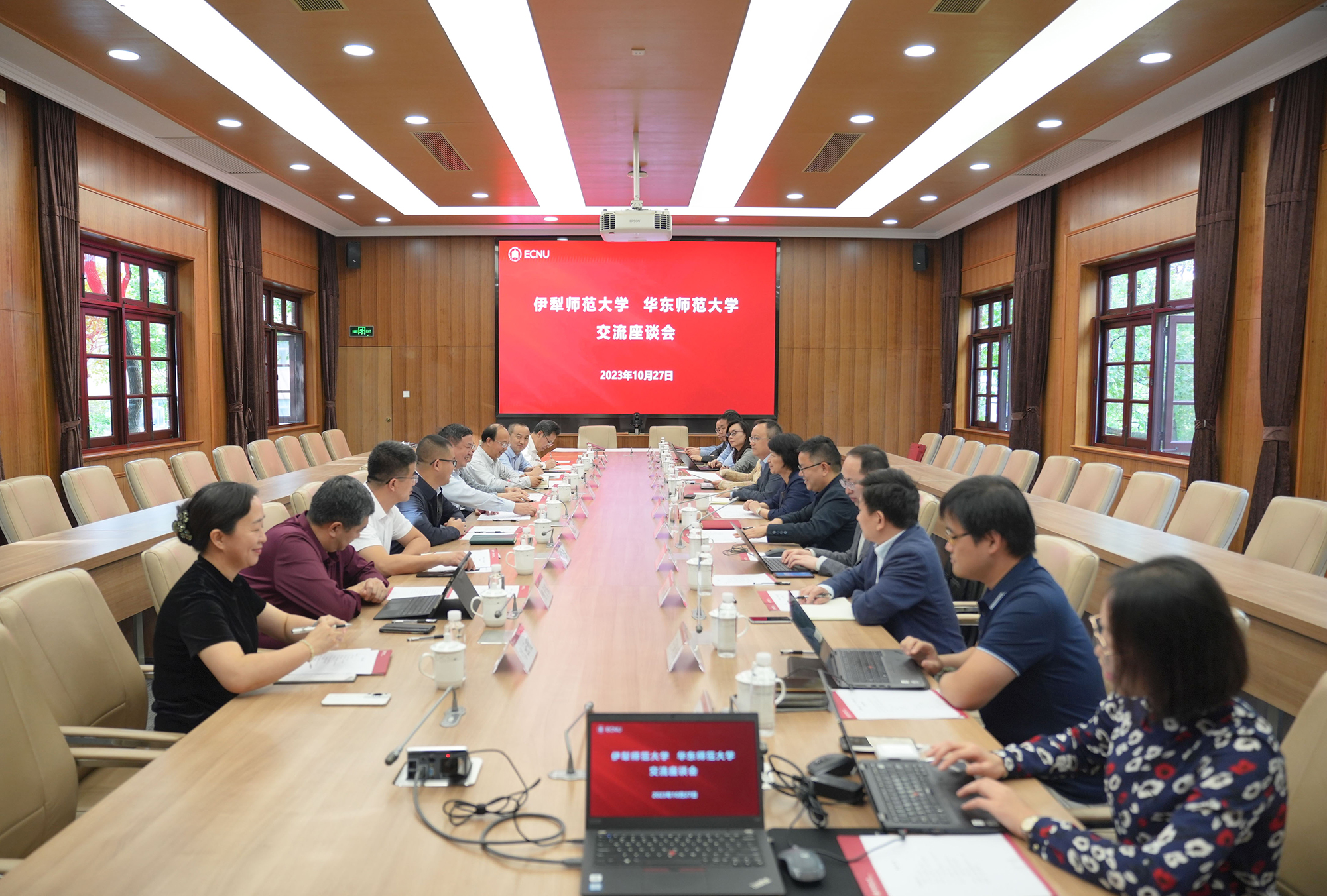 会上,两校相关负责同志就教育教学改革、师资队伍建设、人才引进与短期交流、科学研究、对外交流合作等工作领域进行了深入探讨。伊犁师大党委常委、组织人事部部长冯跃武,华东师大党委常委、统战部部长、学校办公室主任张惠虹,两校有关部门、院系负责人参加座谈会。
