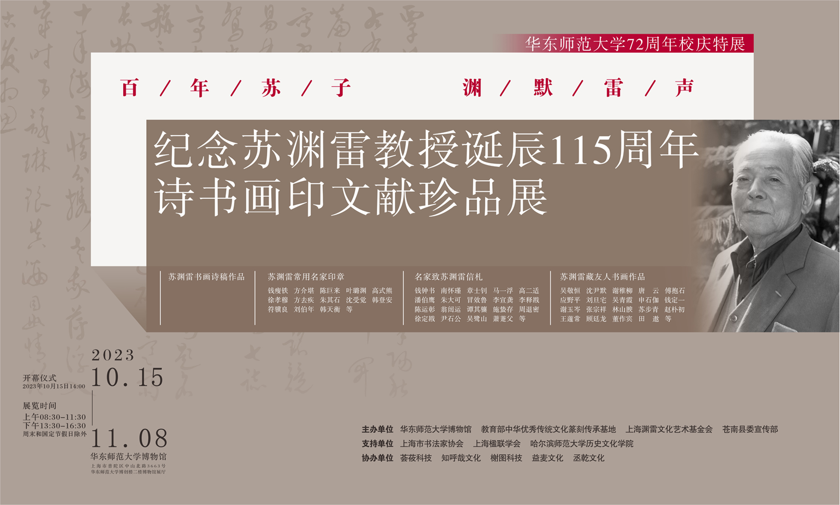 华东师大博物馆始建于1952年,并在历史、钱币、生物、地理、民俗等专业分馆的基础上于2018年成立总馆。历经几代师大人的努力,不断完善和创新文化遗产收藏、保护、展示、教育、研究等功能,为教学科研和社会公众提供优质服务,现已成为中国博物馆协会正式注册团体会员、上海高校博物馆育人联盟会员单位、上海高校文化育人联盟会员单位,并以“综合馆与专题馆结合,常设展与主题展并举”的办馆模式,形成1个总馆和6个专业分馆(中国历史文物博物馆、中国古钱币博物馆、生物博物馆、地理学博物馆、“海上风”民俗博物馆、教育影像博物馆)的“博物馆群”格局,将努力实现新时代一流大学博物馆的发展模式,助力学校“双一流”建设。