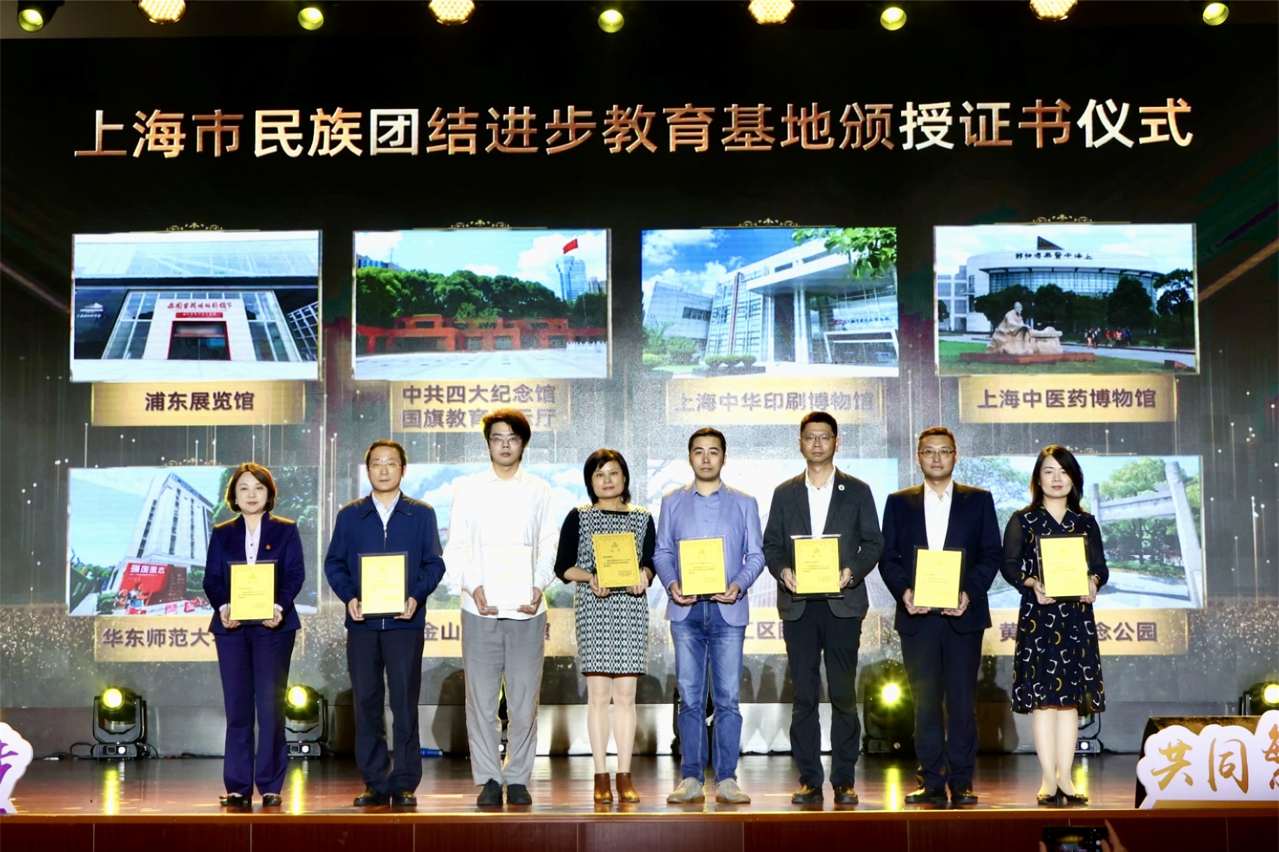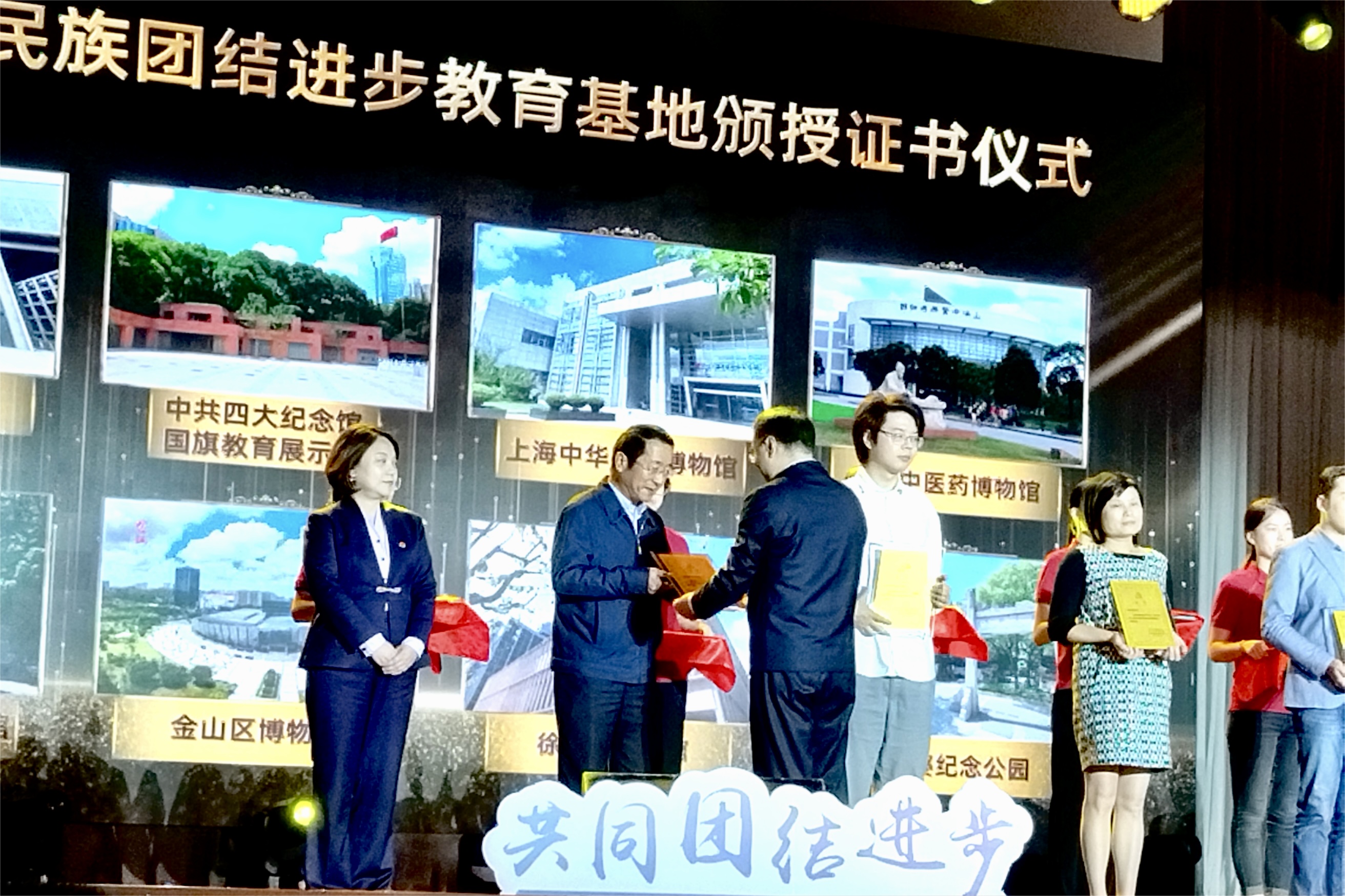 近日,上海市委宣传部、市委统战部、市民族和宗教事务局研究决定命名全市26家单位为2022-2024年度上海市民族团结进步教育基地,华东师大博物馆获评这一殊荣。在10月18日举行的“道中华之美·耀民族之光”铸牢中华民族共同体意识主题活动上,上海市委常委、统战部部长陈通等为获得命名的上海市民族团结进步教育基地颁发证书,华东师大博物馆党支部书记、常务副馆长夏祥伟代表校博物馆接受证书。