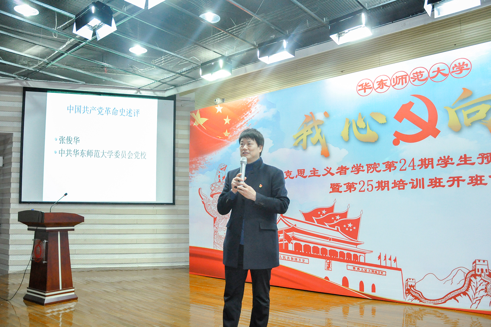 仪式结束之后,张俊华为全体学员带来了《中国共产党革命史述评》的讲座。张俊华从中国近代以来的被侵略史、革命史、奋斗史三个阶段分别阐述了中国共产党的成立是历史必然的选择、精英的选择、人民的选择、无悔的选择,中国共产党的壮大是民心向背的结果、艰苦卓绝的结果、浴血奋战的结果、信仰至上的结果,新时代的学生党员要坚定共产主义信念,践行社会主义核心价值观,成为德、智、体、美、劳全面发展的社会主义建设者和接班人。