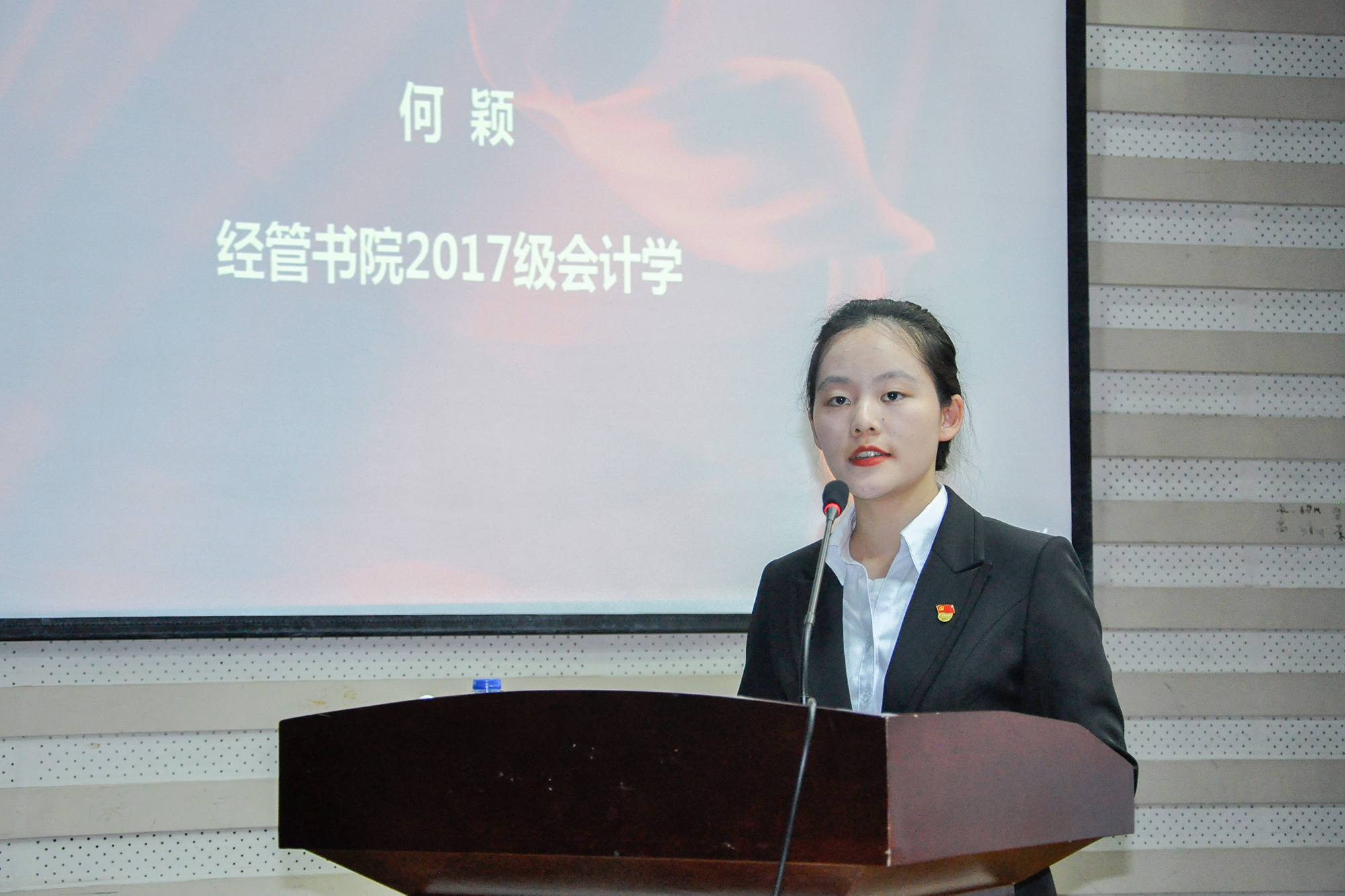 经管书院2017级会计学本科生何颖作为优秀学员代表发言