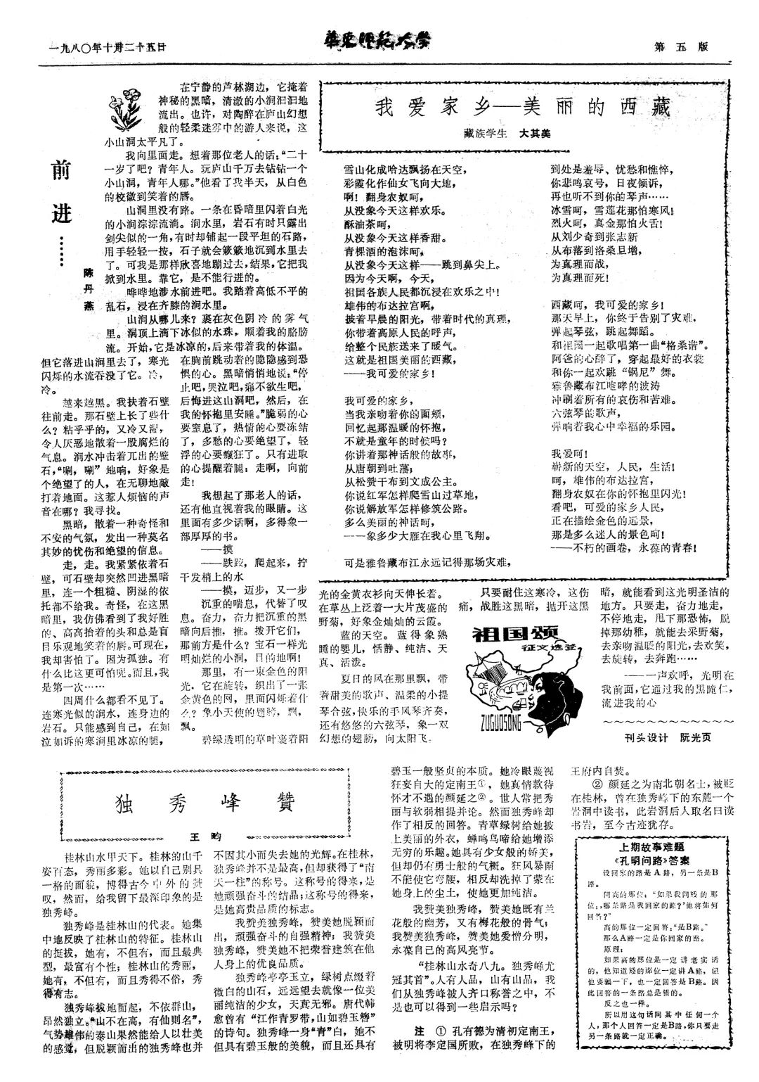 赵丽宏、王小鹰、陈丹燕、格非(原名刘勇)、徐芳等著名作家学生时代在校报副刊“夏雨岛”上发表作品