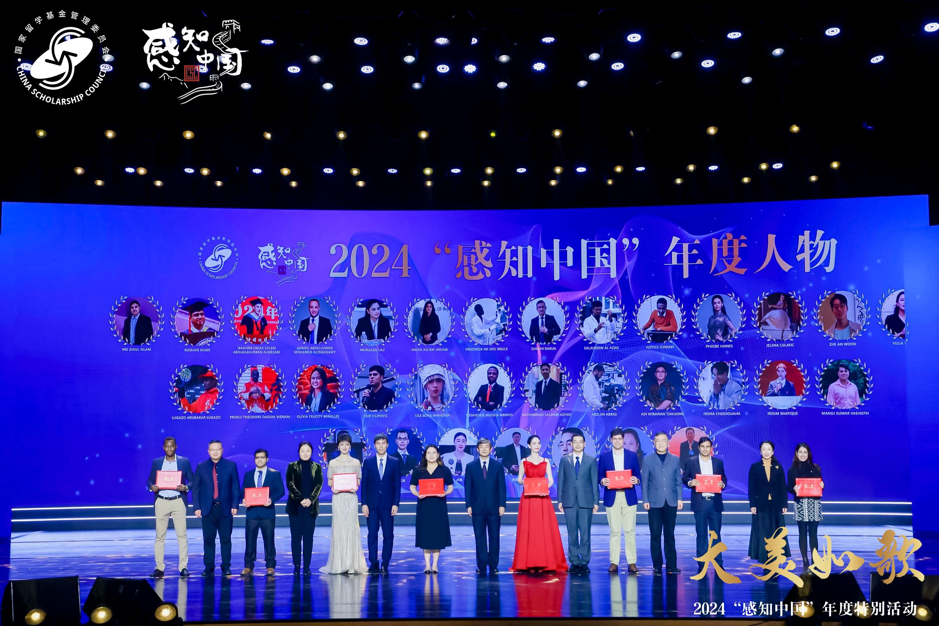 活动在一段精彩的“感知中国”2024年度回顾视频中拉开帷幕。随后,特邀嘉宾为来自武汉大学、天津大学、北京大学、南京艺术学院、万象城awcsport官网等高校的8名年度人物代表颁发了证书。我校美国籍学生宋莉乐凭借对中国文化的传播与交流贡献,被评选为“2024感知中国年度人物”。