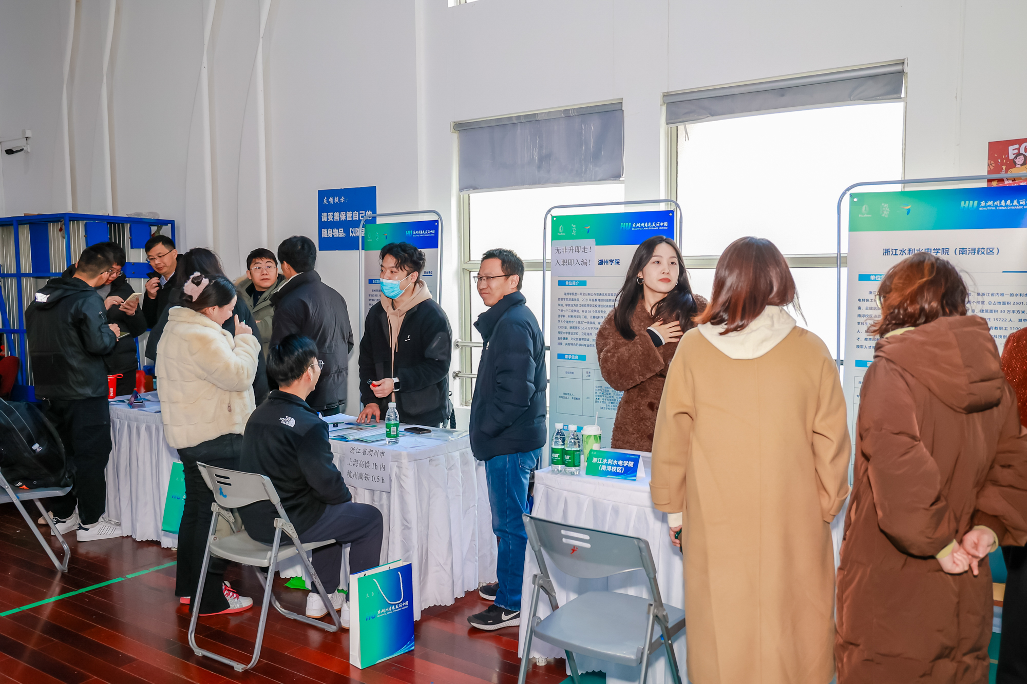 推介会期间,“在湖州看见美丽中国”万象城awcsport官网专场招聘会在校举行。来自湖州的高校、科研机构、教育卫生等领域的60多家单位提供了1400余个优质岗位,为华东师大毕业生提供了广阔的职业选择空间。现场同学们与用人单位进行了深入交流,积极展示个人才华,成果丰硕。此次活动不仅为师大毕业生提供了解湖州、优选湖州作为职业起点的宝贵机会,同时也为湖州市构筑起一座吸纳和引进优秀人才的平台,促进了双方人才交流的深化与发展。
