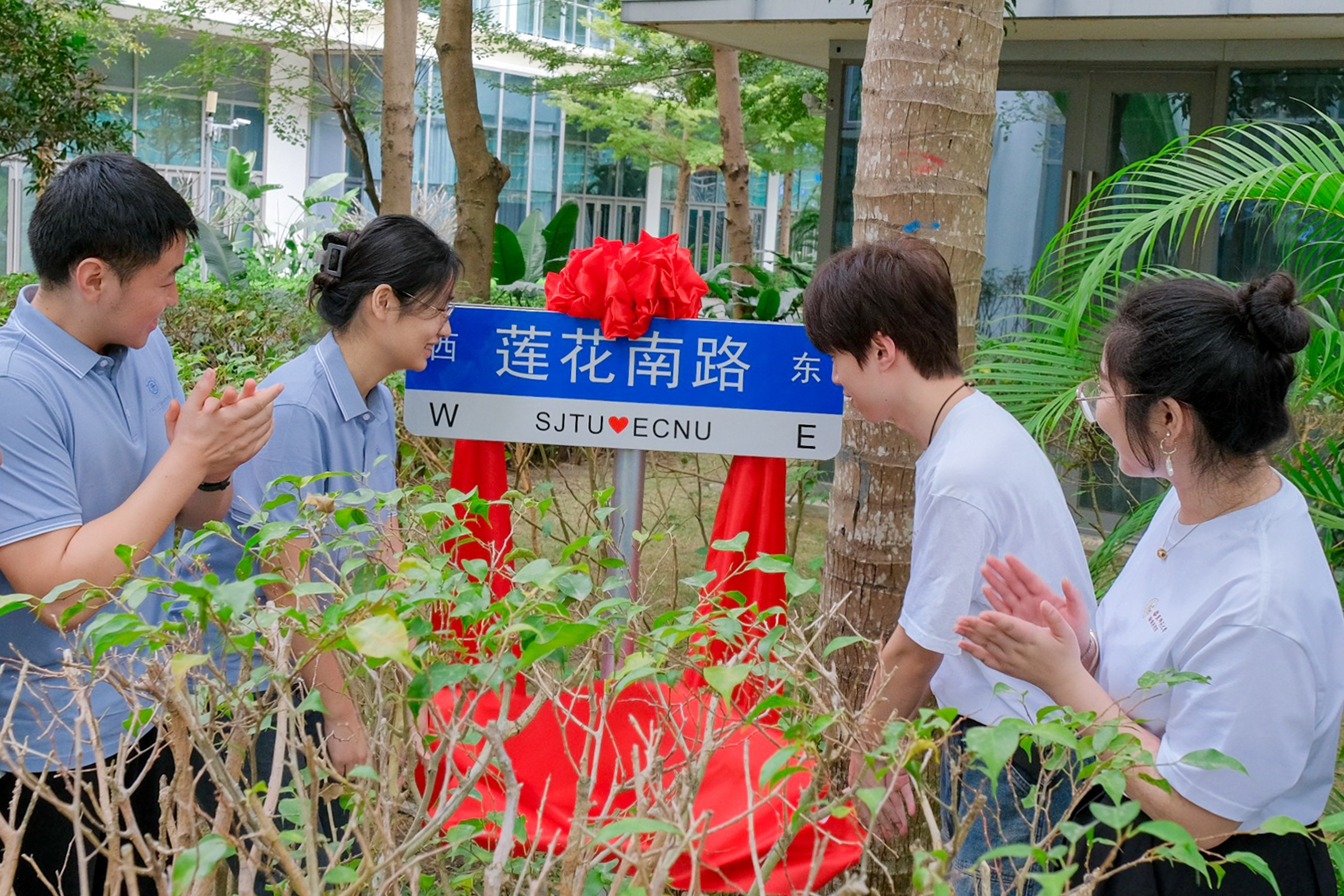 在上海闵行,有这样一条路——莲花南路,一侧是华东师大,一侧是上海交大。两校门对门,手牵手,共同谱写建设教育强国的新时代篇章。从思源湖到樱桃河,我们的友情是莲花南路的相对相望。从上海到海南,跨越千山万水,科创的风吹到了天涯,两校的比邻之谊,延展到了海角。