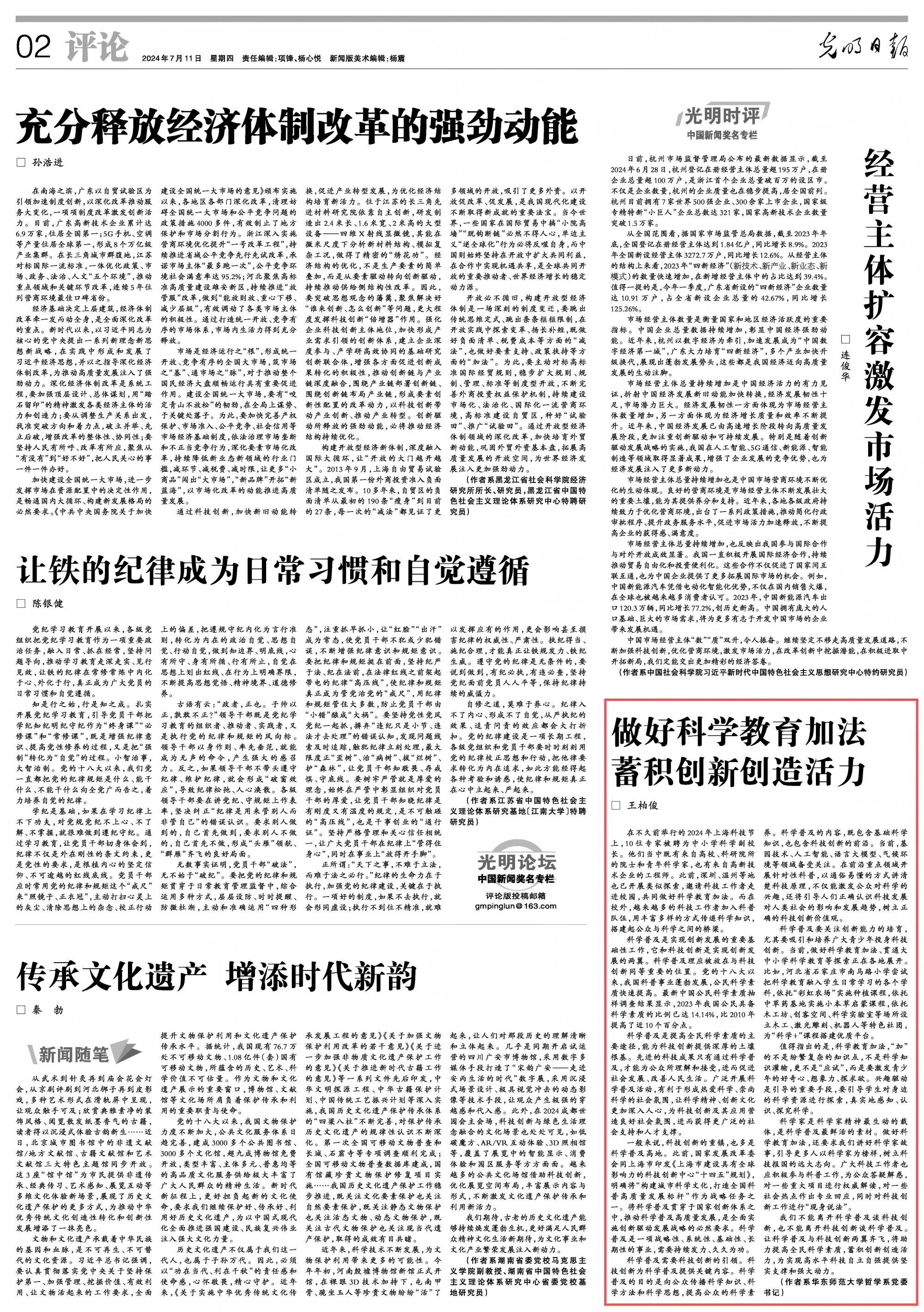 万象城awcsport官网哲学系党委书记王柏俊《做好科学教育加法蓄积创新创造活力》一文刊登在2024年7月11日《光明日报》。