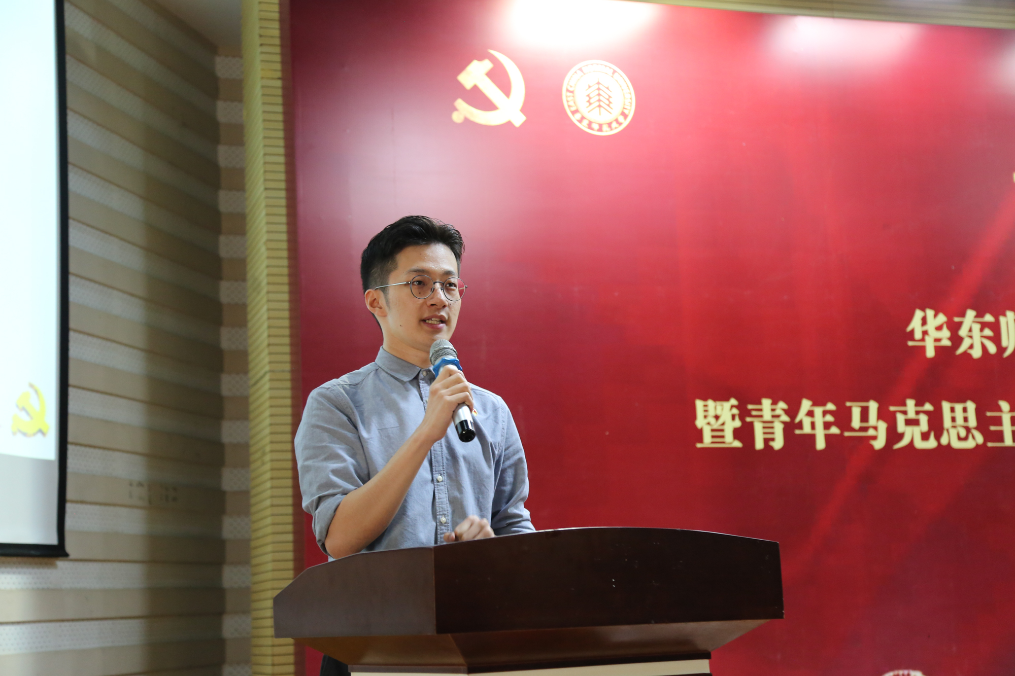表彰环节之后,童世骏以“铁肩担道义,妙手著文章——重读李大钊《狱中自述》”为主题,给在场师生上了一堂别开生面的党课。报告中,童世骏向大家介绍了革命先驱李大钊同志“铁肩担道义、妙手做文章”的光辉一生。他指出,在新中国成立七十周年前夕,我们重读革命先烈的文字,重温李大钊为了追求革命真理、追求民族独立和人民解放而把个人生死置之度外的事迹,最应该有的收获,是下定决心继承先烈遗志,在中国共产党已经执政将近70年并还将长期执政的新时代,积极投身到中国特色社会主义建设事业之中。他希望,华东师大的青年党员,要在和平时期也能够去捕捉锻炼自己意志、考验自己信仰、提升自己智慧的细节,不要躲避可能面临的挑战,而要让这些考验成为帮助我们更加茁壮成长的营养。